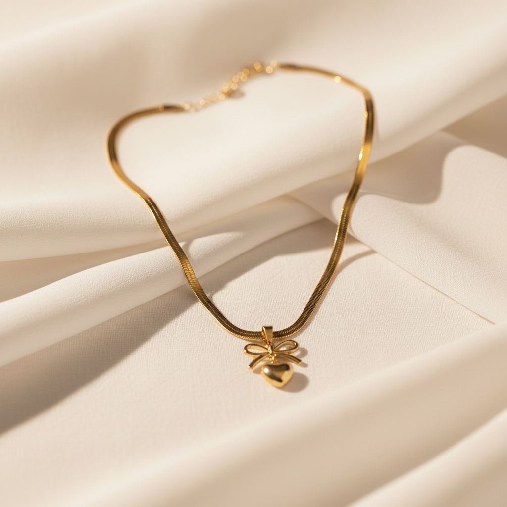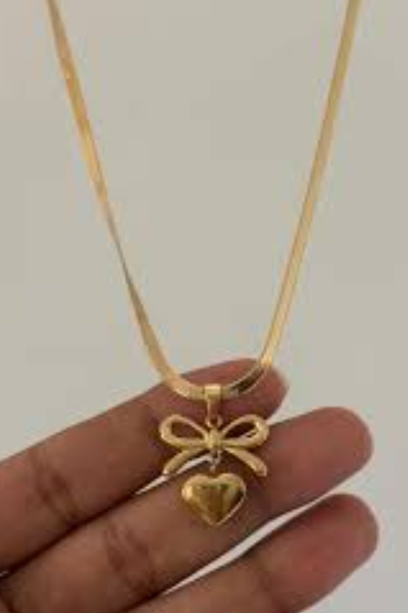 Anti-Tarnish Pendant – Elegant Bow and Heart Design