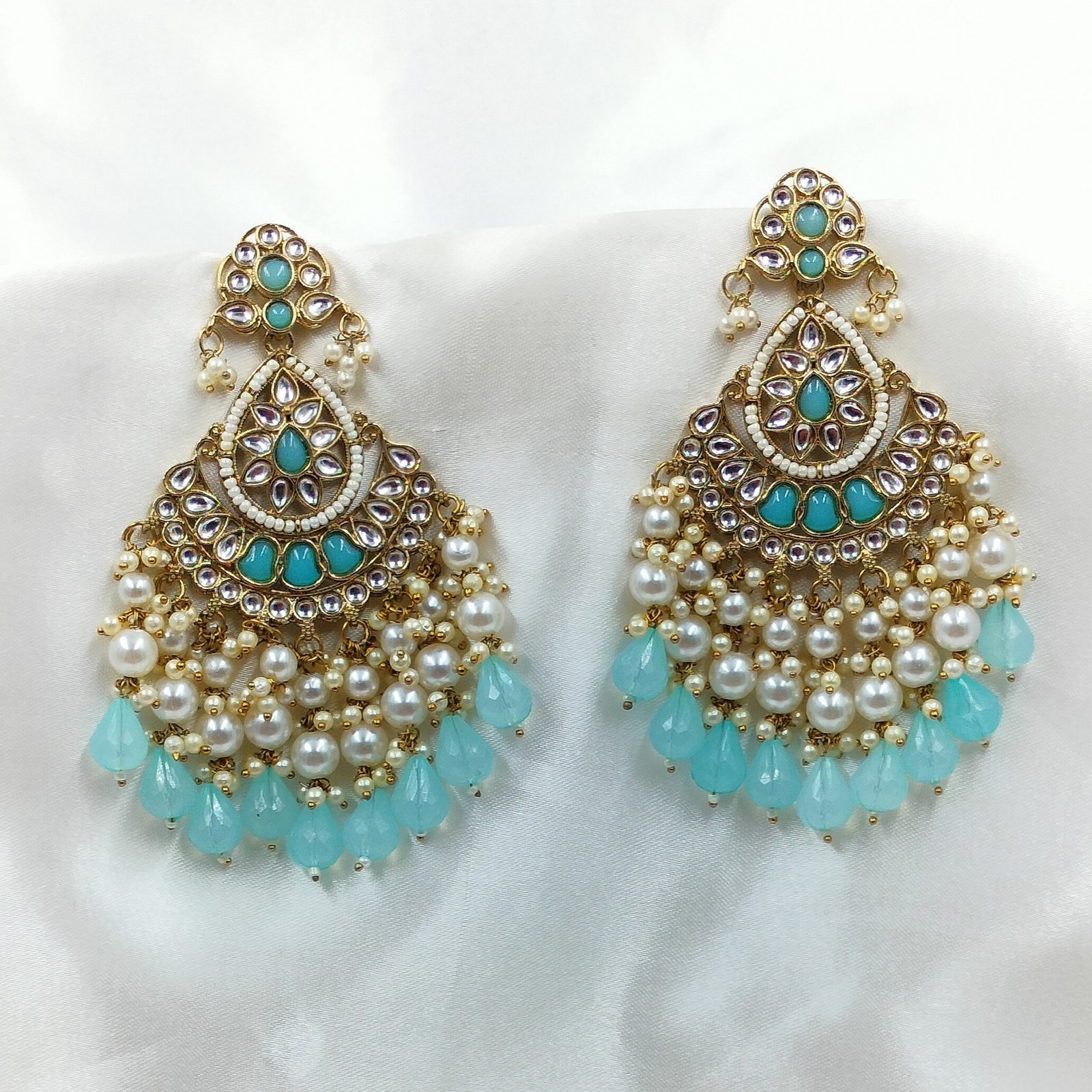 Aqua Pearl Dangler Earrings – Kundan, Polki & Pearl Jewellery Online at www.radiantjewels.store