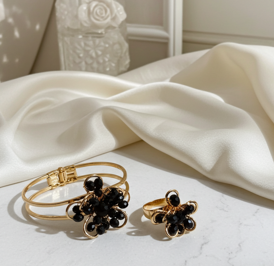 What truly sets the Black Crystal Bracelet and Ring Combo apart is its refined craftsmanship. Each crystal is carefully placed to enhance shine and durability. In addition, the bracelet features a flexible, adjustable band that fits comfortably on most wrists, while the matching ring offers an easy adjustable fit for everyday comfort. As a result, you get jewellery that feels as good as it looks.