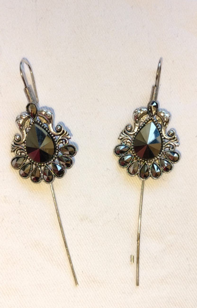 These black oxidised ear pins feature a detailed design that gives a rich and premium look. Moreover, the dark oxidised finish adds a vintage charm, making them perfect for both ethnic and western outfits.