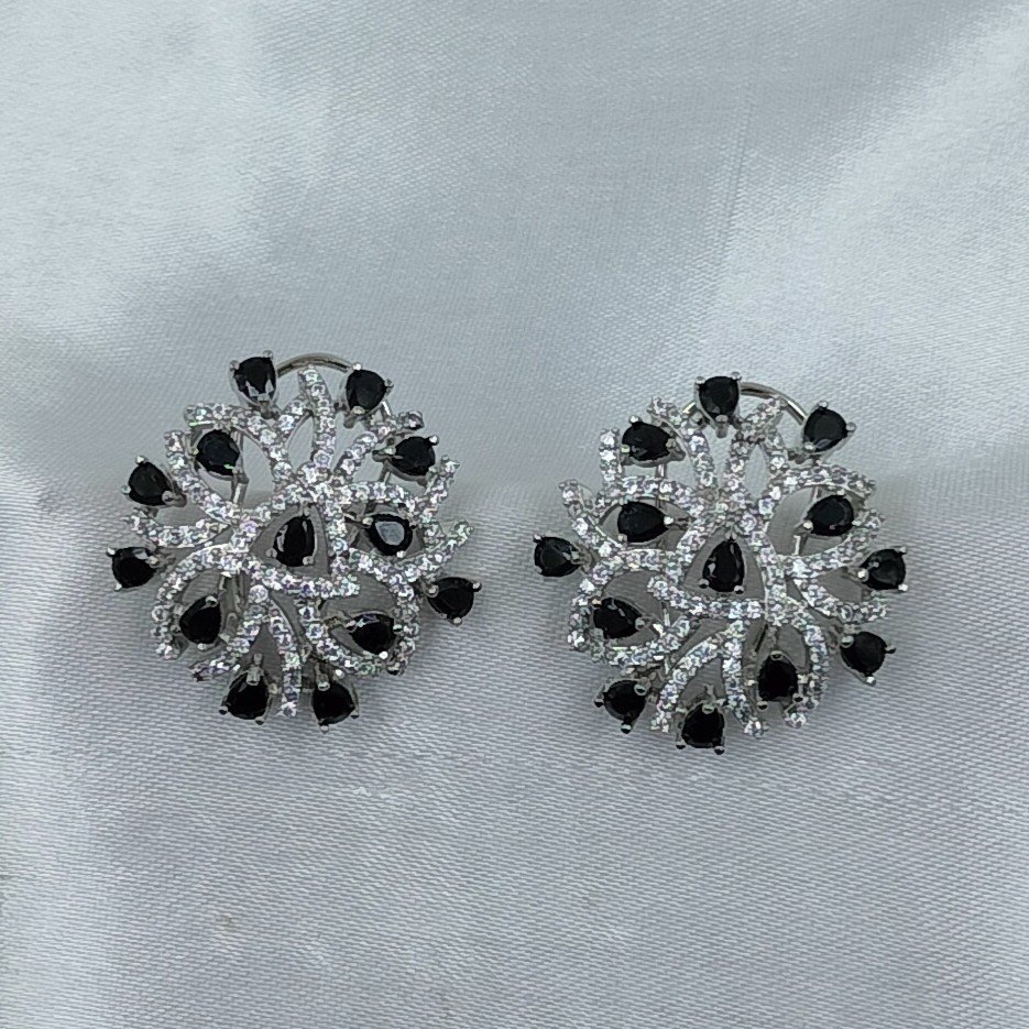 Add floral elegance with a bold twist to your collection with our Black & Silver CZ Stud Earrings . Designed to make a confident statement, these earrings feature rich black crystals beautifully nestled in a radiant gold floral frame. The high-shine finish and bold color contrast create a striking accessory you’ll want to wear again and again.