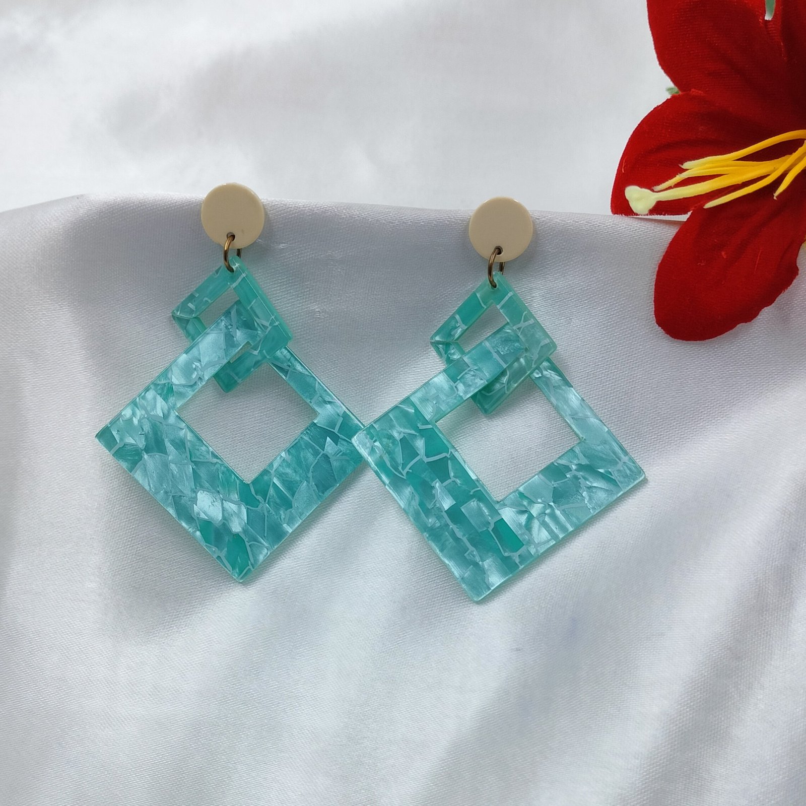Break away from the ordinary with our Blue Resin Geometric Drop Earrings – a perfect blend of bold structure and breezy style. These statement earrings feature layered abstract square frames in ocean blue resin with a unique marbled finish, suspended from soft beige round studs. Lightweight yet dramatic, they instantly elevate any casual or party look.