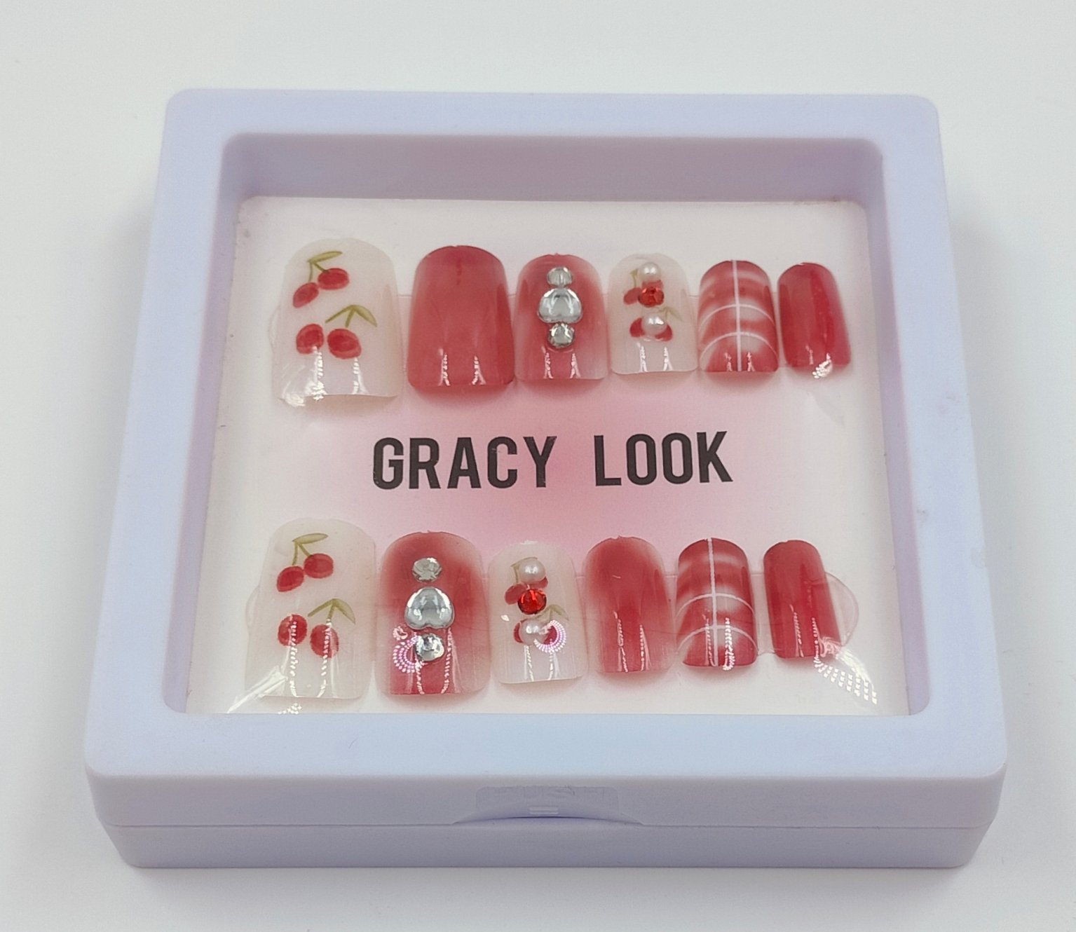 These aren’t ordinary fake nails. Crafted with premium-quality materials, Cherry Charm Press-On Nails flex with your natural nails for a comfortable fit. They are reusable press on nails, lasting through your busy day without damage. The strong adhesive ensures a secure hold, yet they remove easily when you’re ready for a new look.