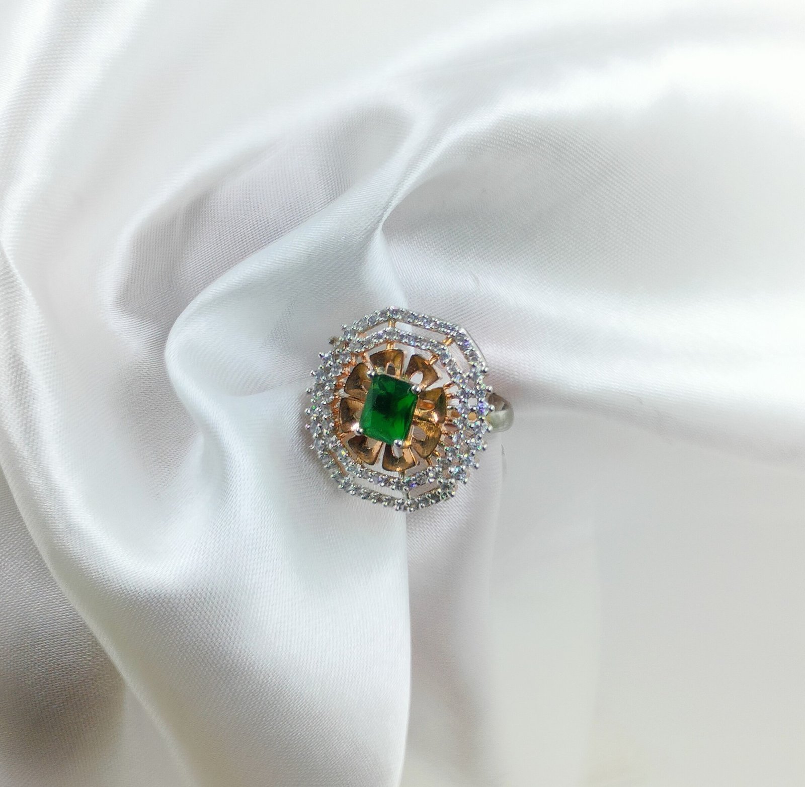 Pair it with traditional lehengas, sarees, or Indo-western attire—the Copper-Toned CZ Ring complements rich fabrics and vibrant palettes effortlessly. Whether you’re attending a wedding, a festive event, or a family function, this piece instantly adds regal charm.