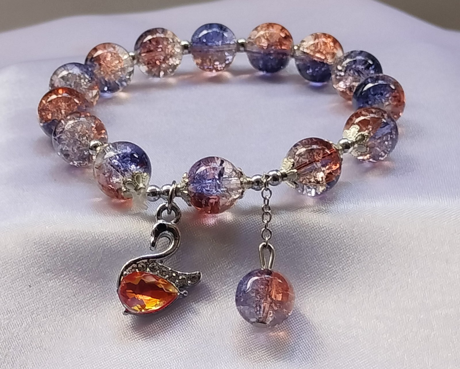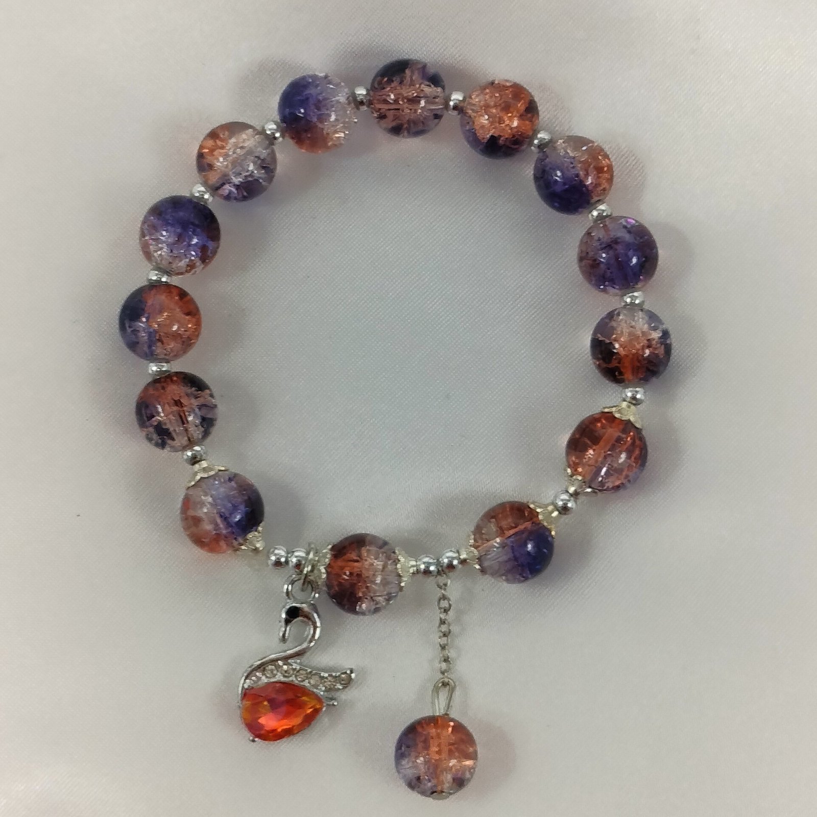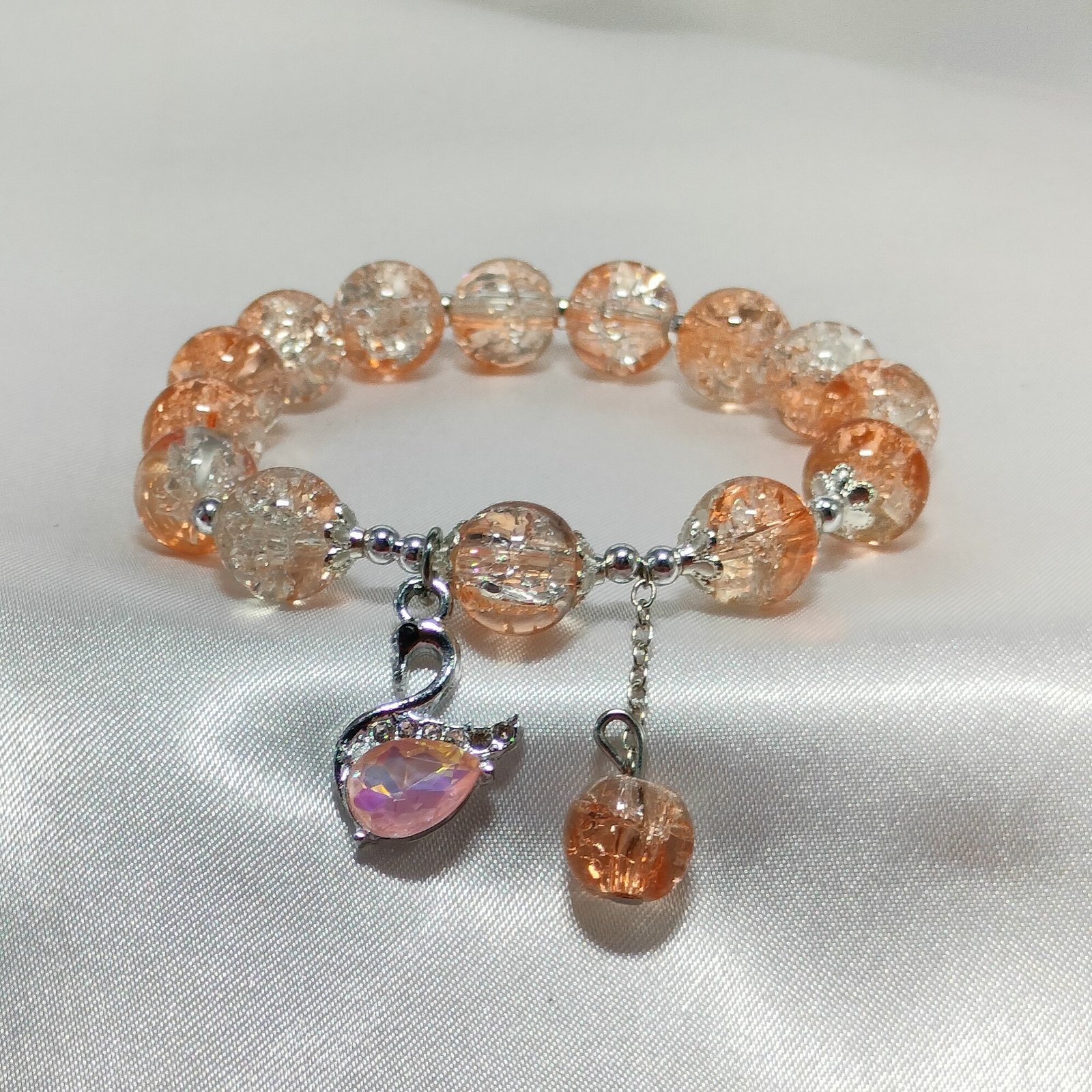 Crystal Bracelet with Swan Charm adds a touch of sparkle and elegance to any look. Made with dual-tone crystal beads, it shines beautifully in natural or festive light. The graceful swan charm stands as a symbol of love, purity, and beauty, giving this bracelet a meaningful appeal.