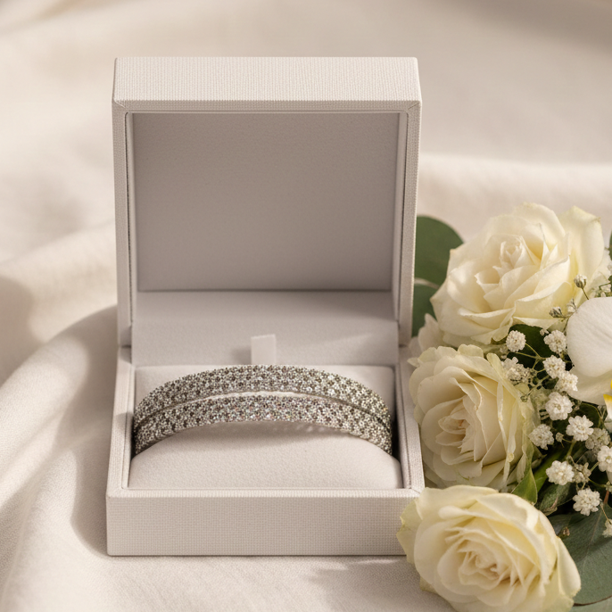 Turn every occasion into a celebration with our Dazzling CZ Bangles – the perfect blend of elegance and brilliance.