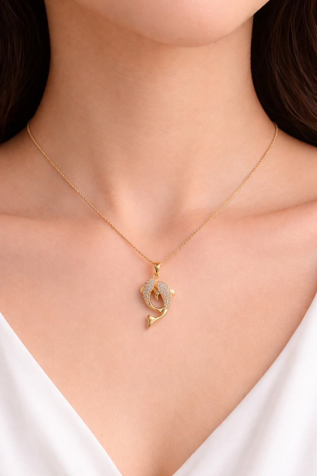 The Dual Dolphin Pendant is lightweight and comfortable, so you can wear it throughout the day. It does not feel heavy on the neck, which makes it ideal for daily wear. In addition, the high-quality finish ensures durability and long-lasting shine, helping you maintain a polished look over time.