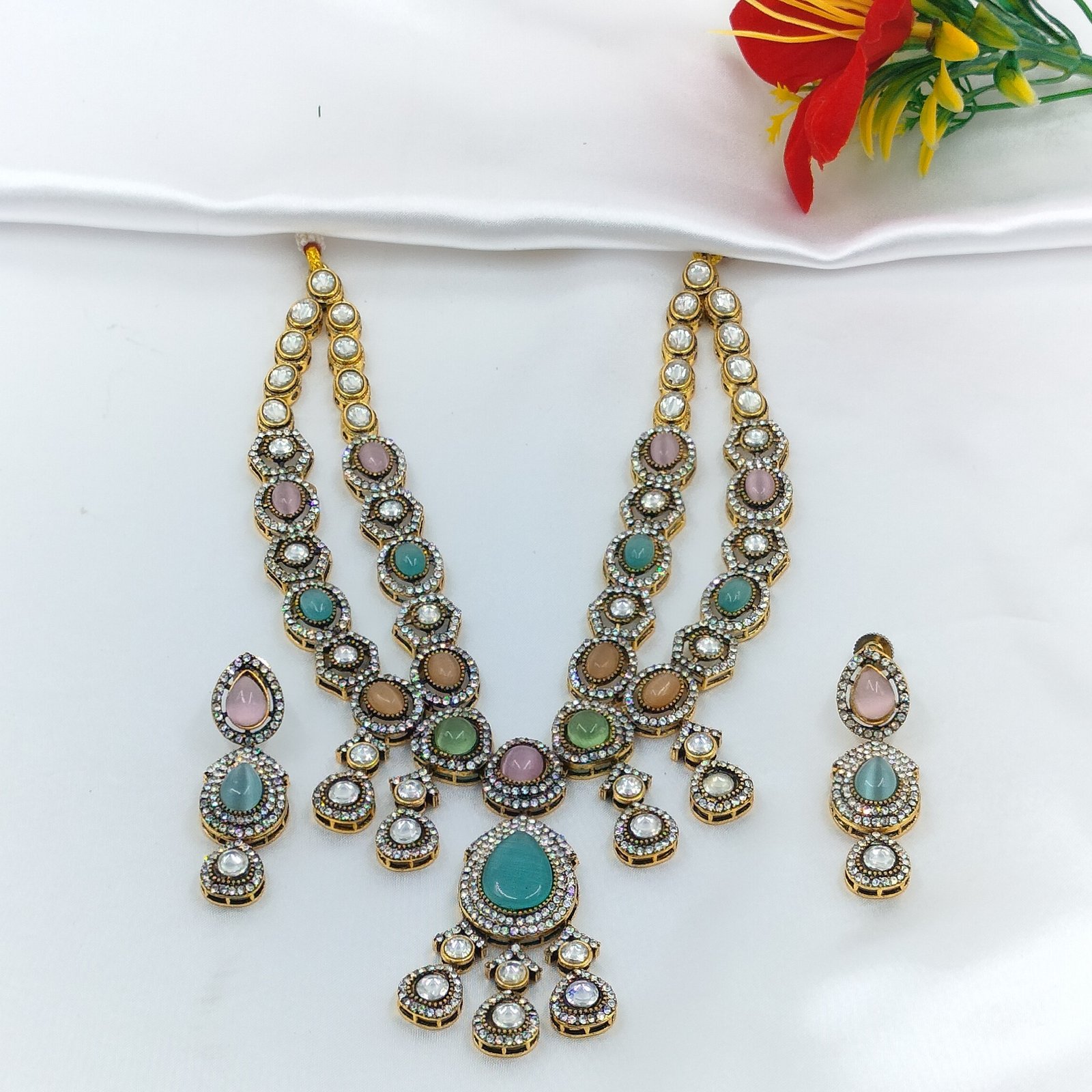 Make every moment shine with our Dual-Layer Kundan Necklace Set, a regal accessory crafted to dazzle. Designed with two ornate layers of faux Kundan stones, this set adds depth and richness to any festive or bridal outfit.