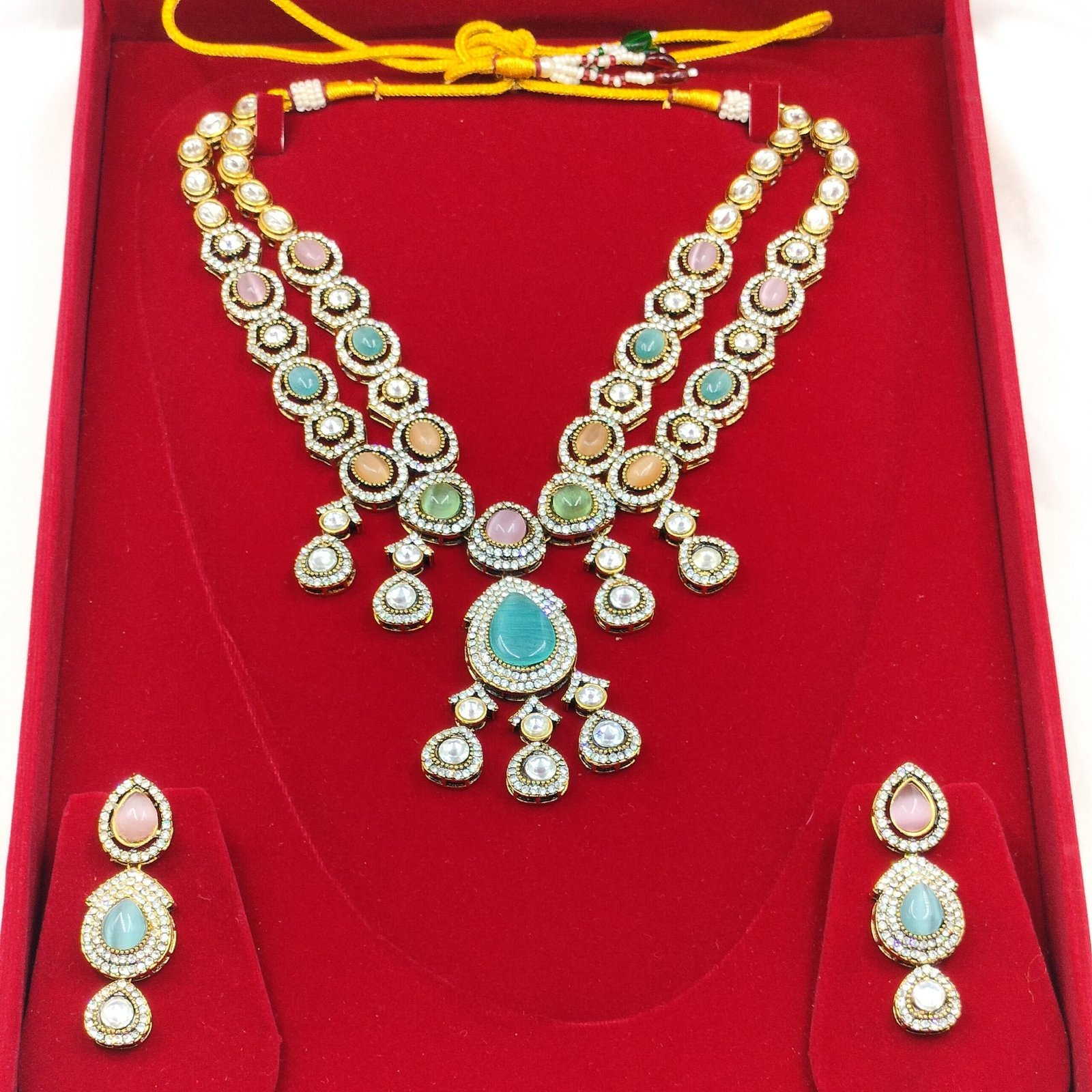 Product Name: Long Dual-Layer Multicolor Kundan Necklace Set