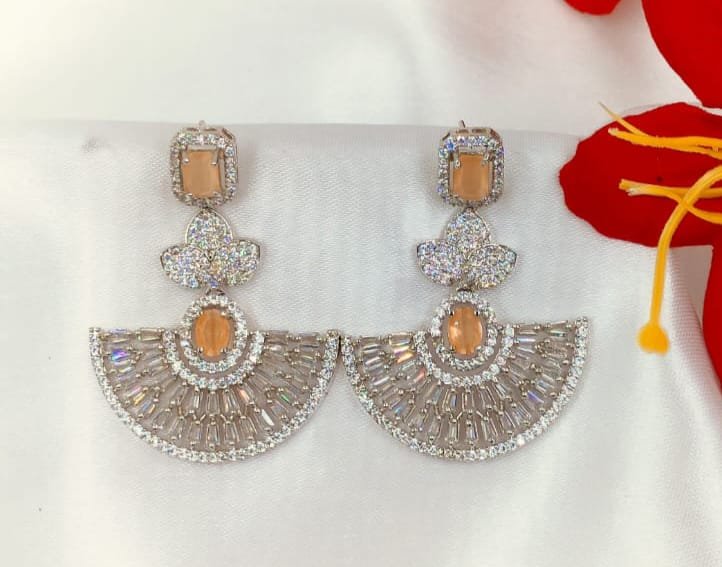 ✨ Elegant CZ Stone Fan Earrings – Designer Dazzle with Modern Flair