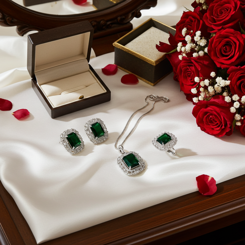 At Radiant Jewels, we believe every piece should reflect beauty, purpose, and personality. The Elegant Emerald Stone Jewelry Set does exactly that — offering luxury, symbolism, and style in one dazzling package.