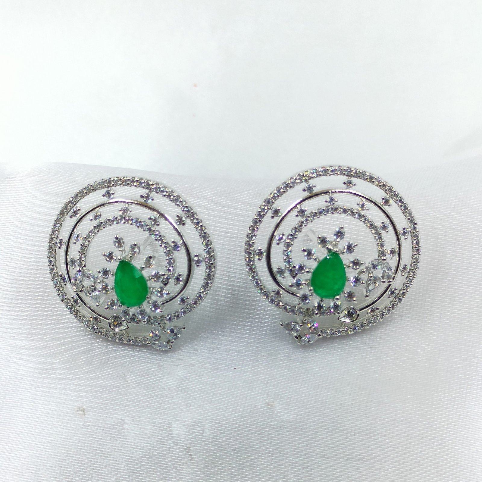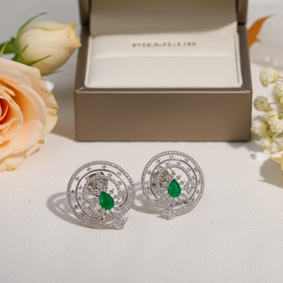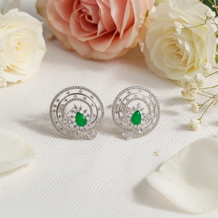 Emerald Green & CZ Stud Earrings – Classic Elegance with a Royal Touch