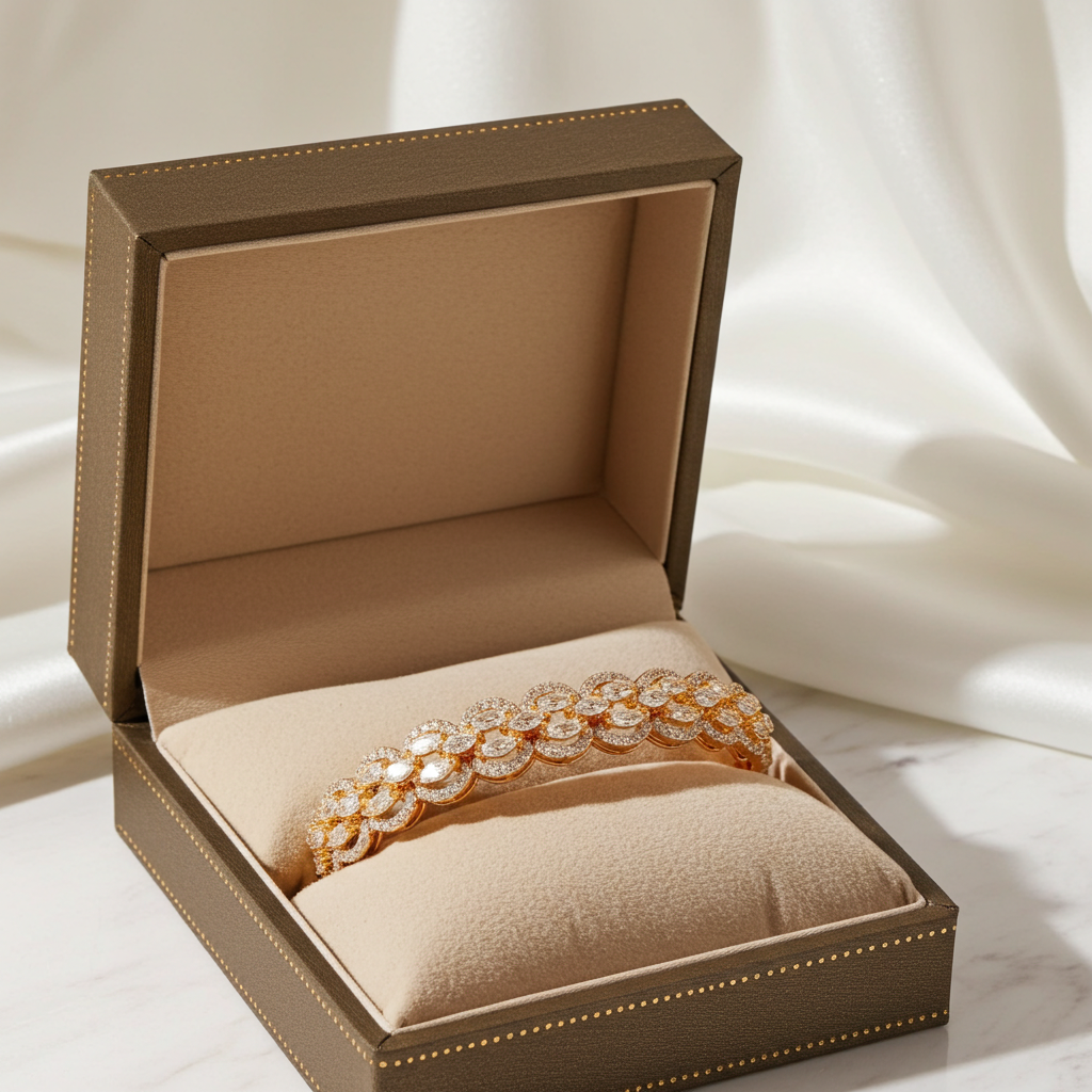 Step into the world of luxury imitation jewellery with this timeless piece. So, shop the Floral CZ Kundan Bracelet now at Radiant Jewels Store and make every occasion unforgettable.