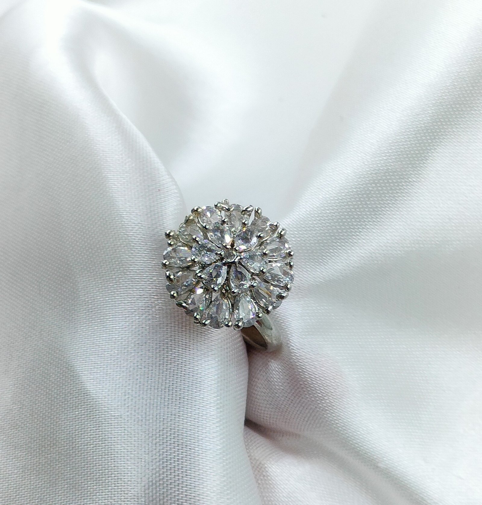 With its silver-tone finish, the ring ensures both durability and comfort. Moreover, its lightweight build allows you to wear it for long hours without strain. The sparkling CZ stones catch the light beautifully from every angle, while the floral design adds a feminine touch. Therefore, it becomes an ideal choice for weddings, parties, festive occasions, or even as a statement piece for everyday wear.