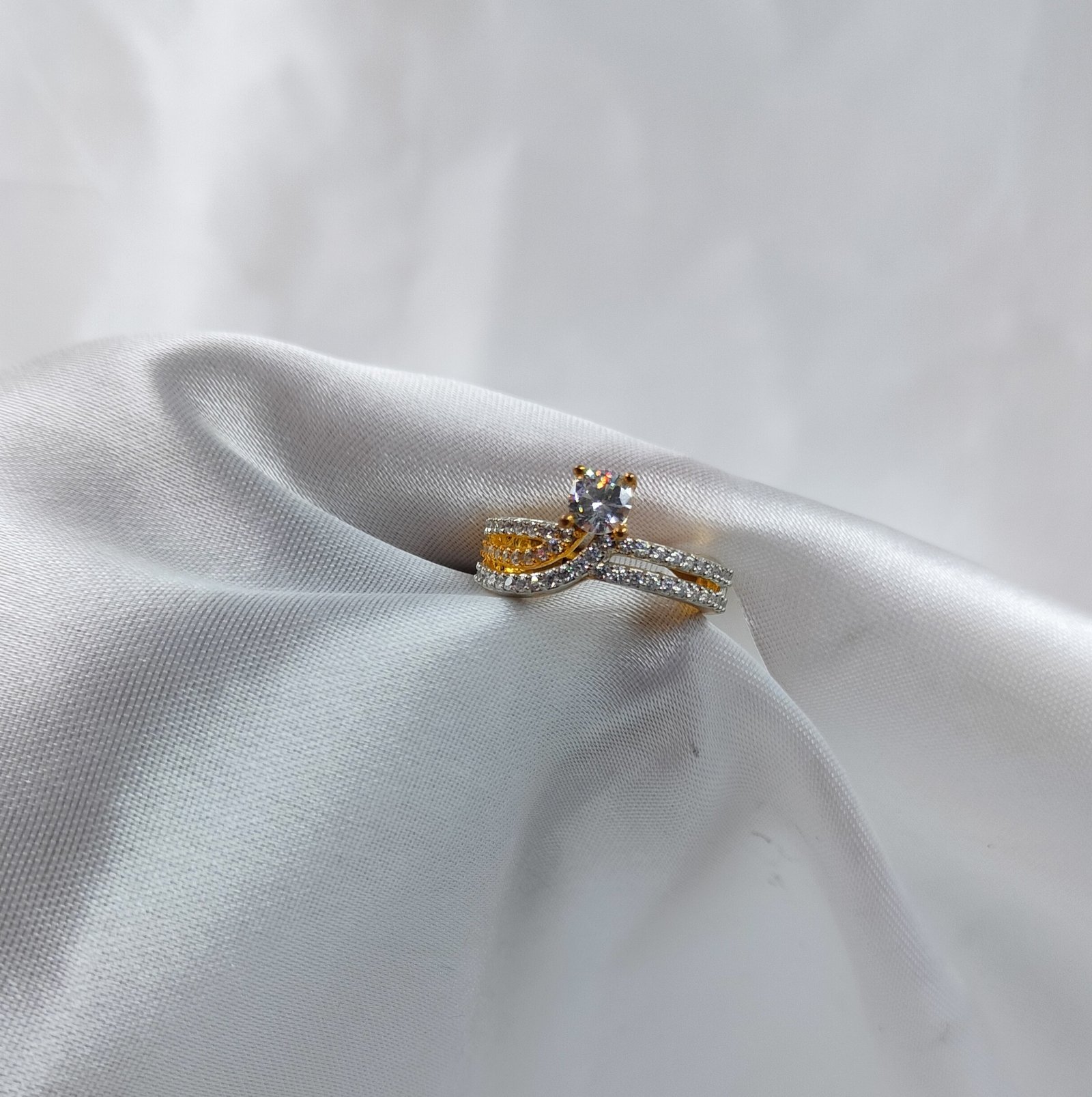 Turn heads and spark conversations with our AD Crossover Ring, a bold fusion of classic elegance and modern design. Crafted to perfection, this gold-plated masterpiece features a distinctive crossover style encrusted with shimmering American Diamond (AD) stones, creating a luxurious yet wearable piece for every festive or glamorous occasion.