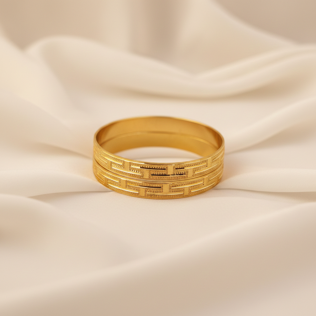 Add timeless charm to your ethnic collection with our Gold-Toned Textured Kada Bangle, a stunning fusion of traditional craftsmanship and modern finesse. Designed to make a statement, this bangle features exquisite embossing with detailed symmetrical cutwork patterns that reflect heritage artistry with a contemporary edge.
