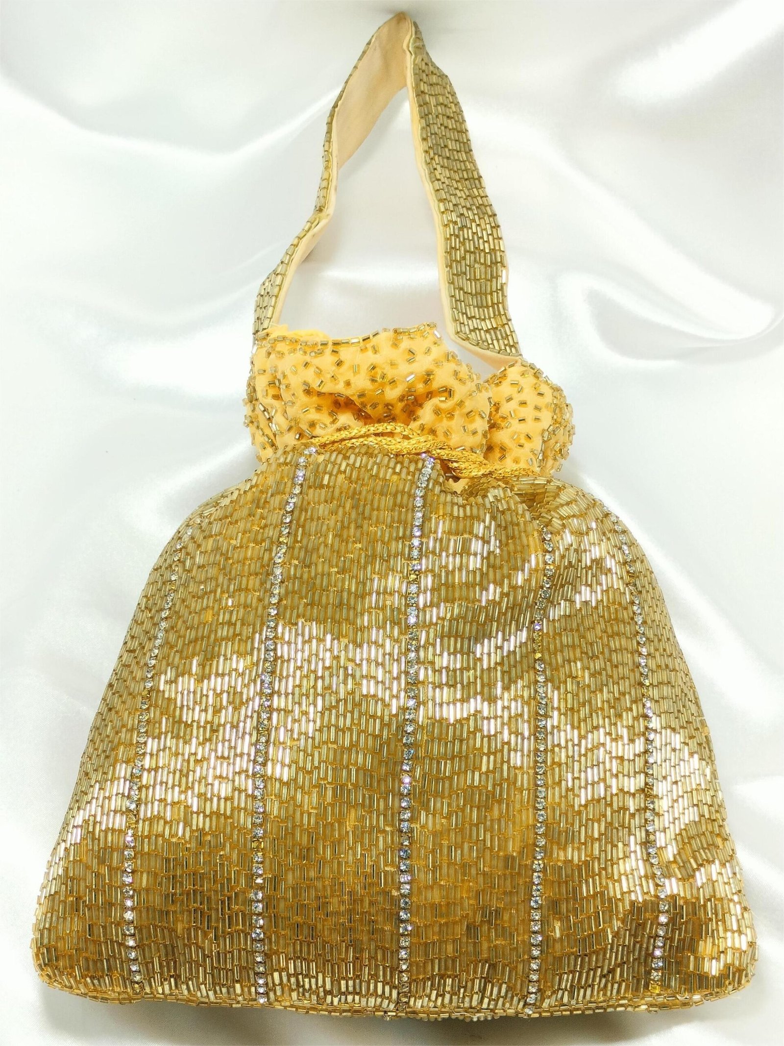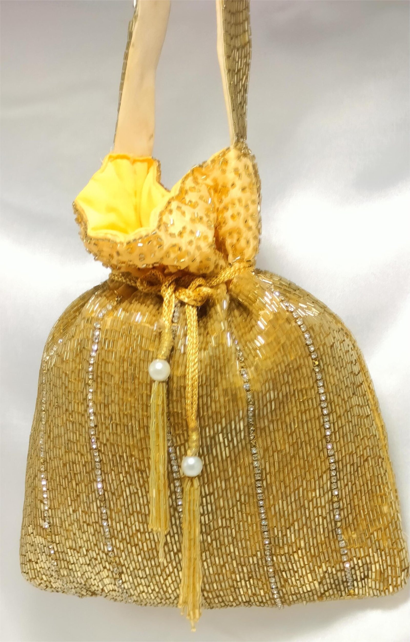 Whether you’re a bride, wedding guest, or festive fashionista, this Golden Katdana Potli Bag brings the ideal blend of function and flair.