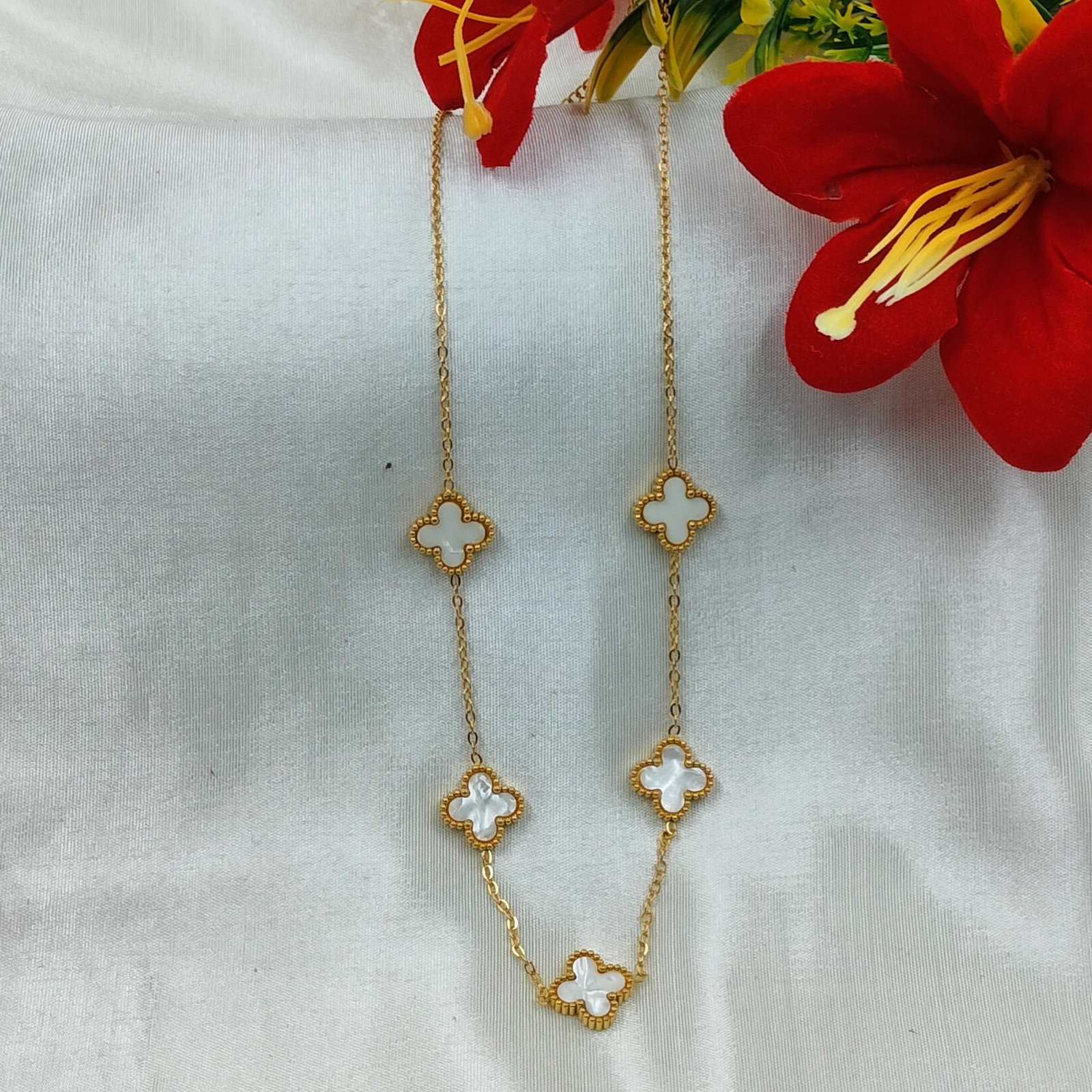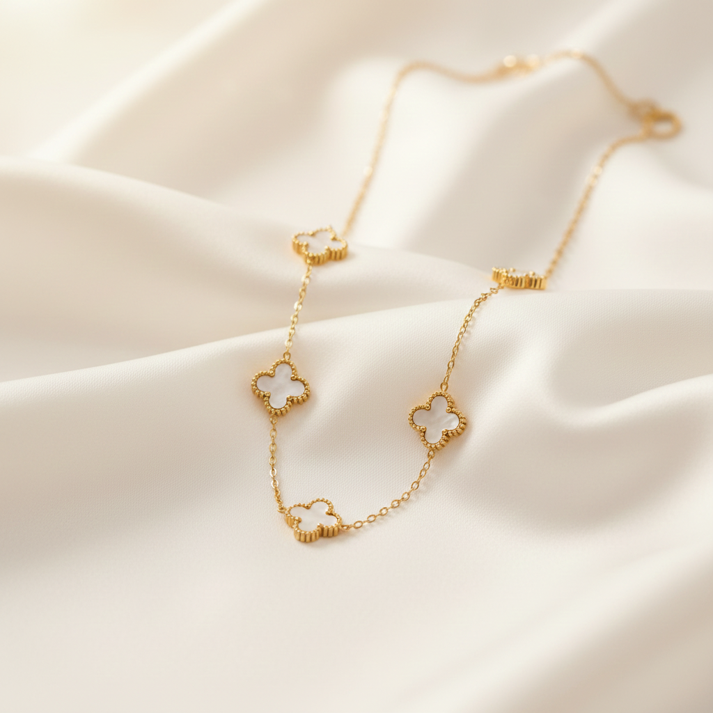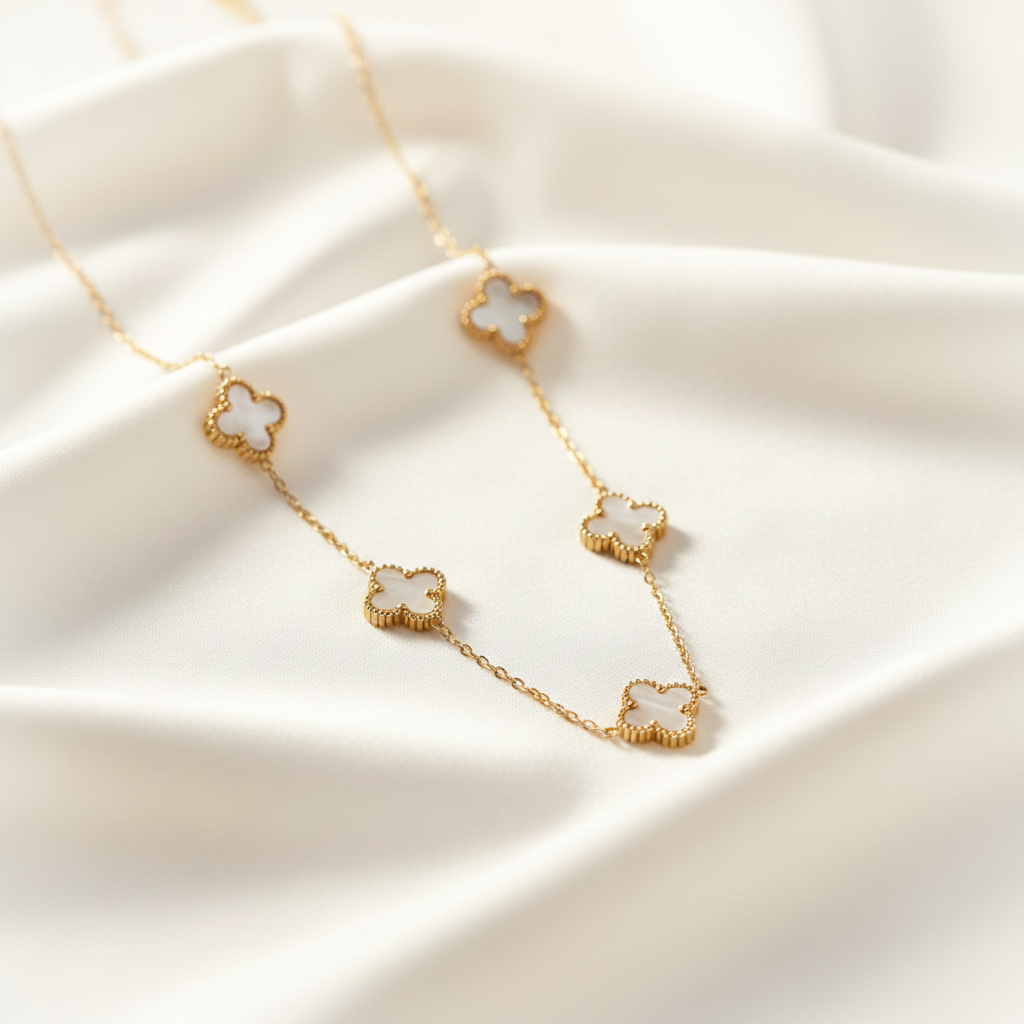 Elevate your everyday style with our Graceful White Clover Charm Necklace, a radiant fusion of luck, beauty, and elegance. This delicate piece is inspired by the classic symbolism of the four-leaf clover—representing hope, faith, love, and luck—making it a meaningful accessory for any occasion.