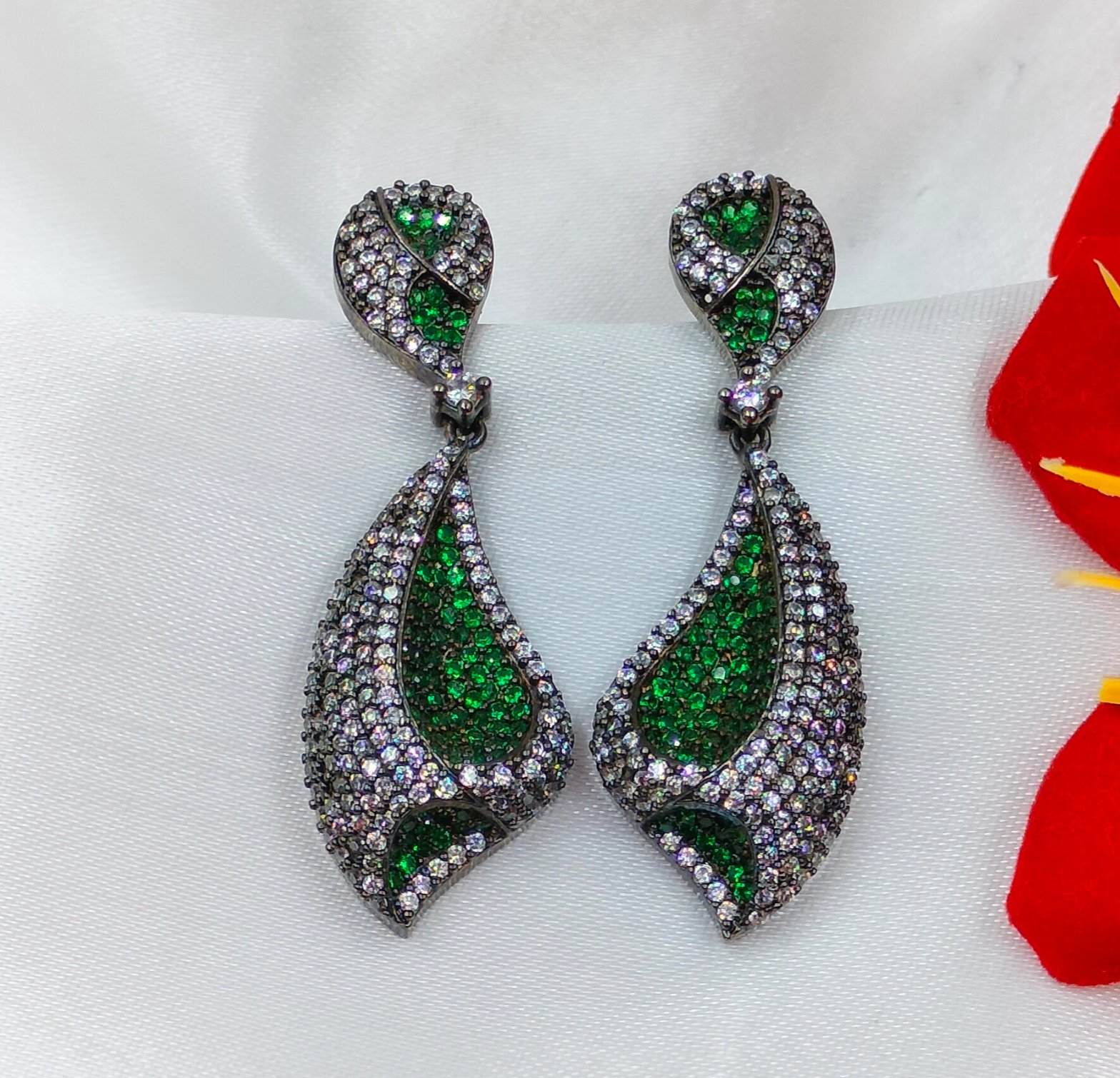 Grace Meets Glamour – Green & Silver CZ Earrings