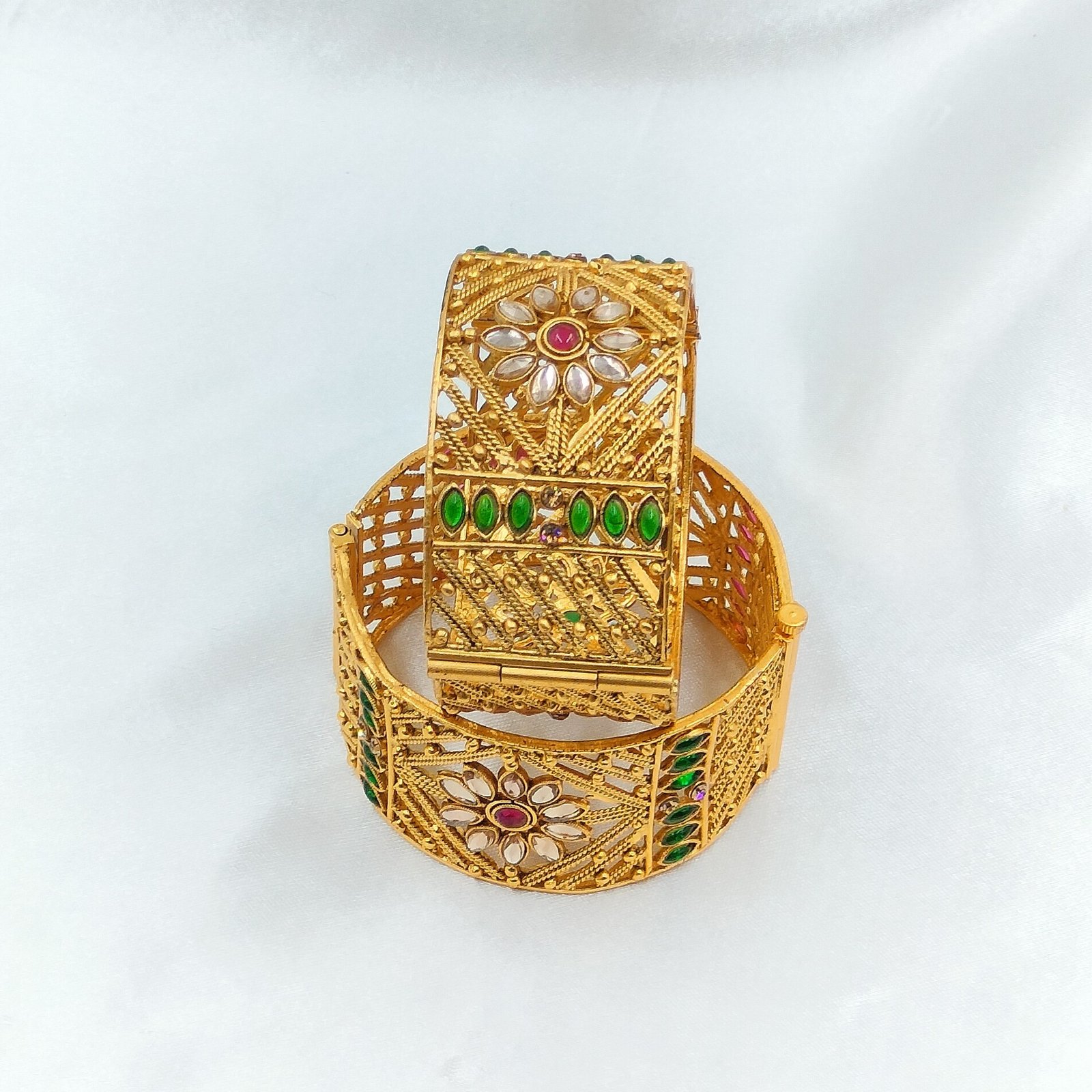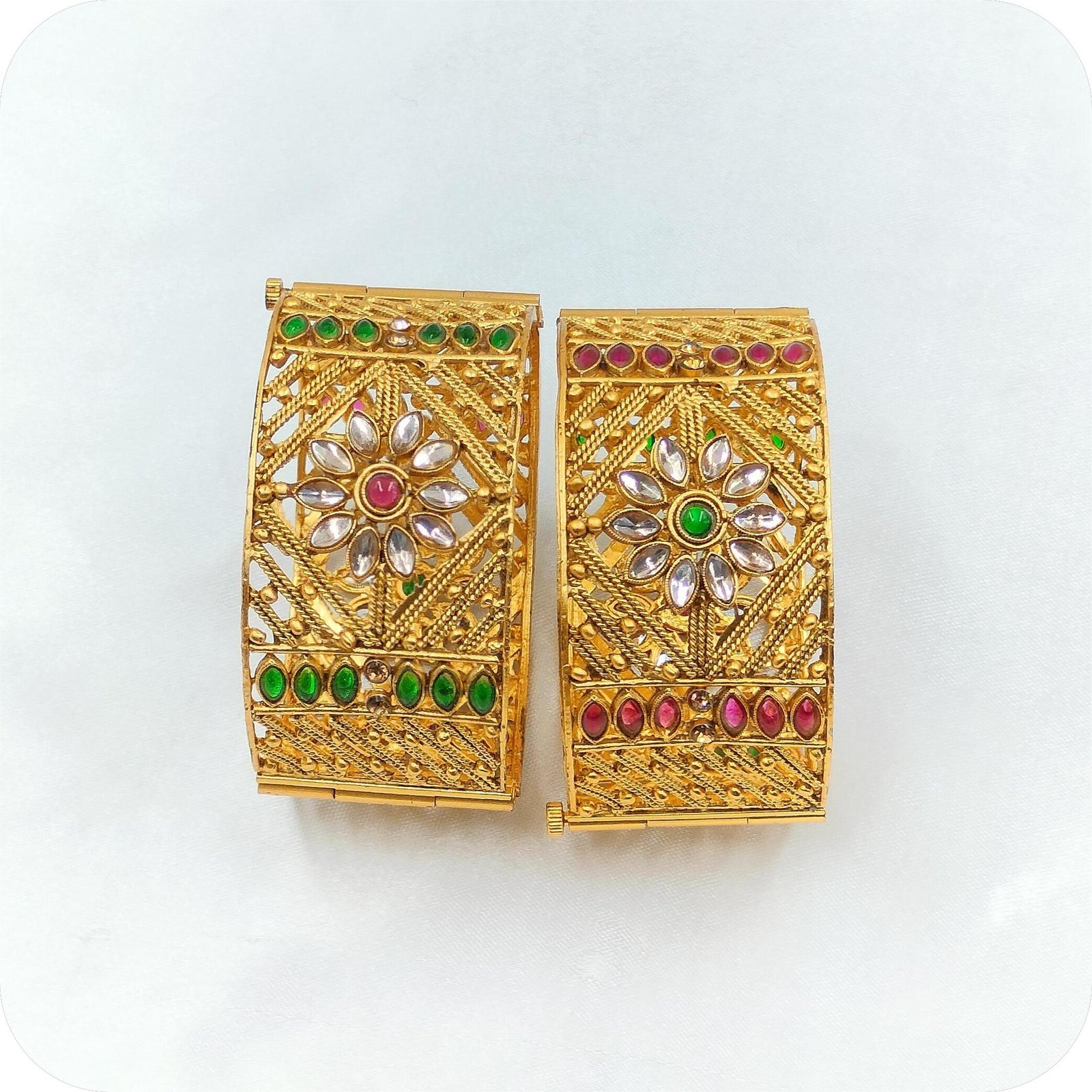 The 2.4 size ensures a snug yet comfortable fit. You can wear them all day without discomfort. These bangles work beautifully for weddings, festive celebrations, or cultural gatherings. Their design draws inspiration from temple jewellery, giving you a regal look for special moments.