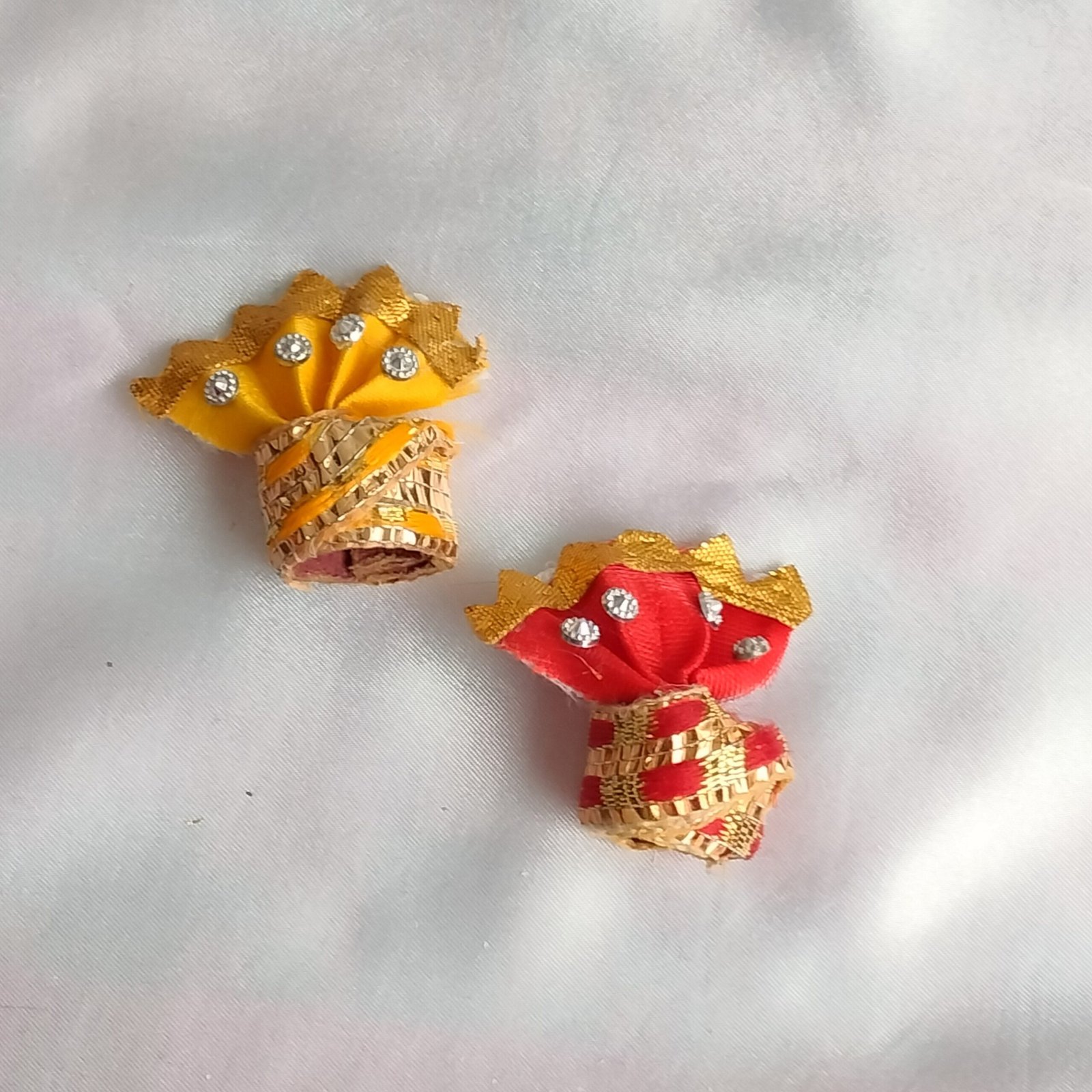This Laddu Gopal Dress is specially tailored for idols measuring approximately 5 to 6 inches in sitting posture. Therefore, it fits securely while maintaining a neat and devotional look.