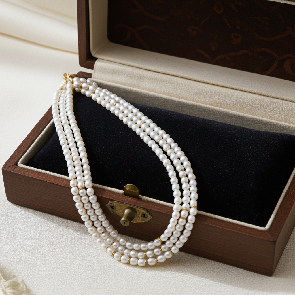 If you’re looking for a timeless yet modern accessory that instantly elevates your festive and party outfits, the Layered Pearl Necklace is the perfect choice. This beautifully crafted multi-strand pearl necklace adds sophistication, shine, and graceful charm to any look, making it a must-have statement piece in your jewellery collection.