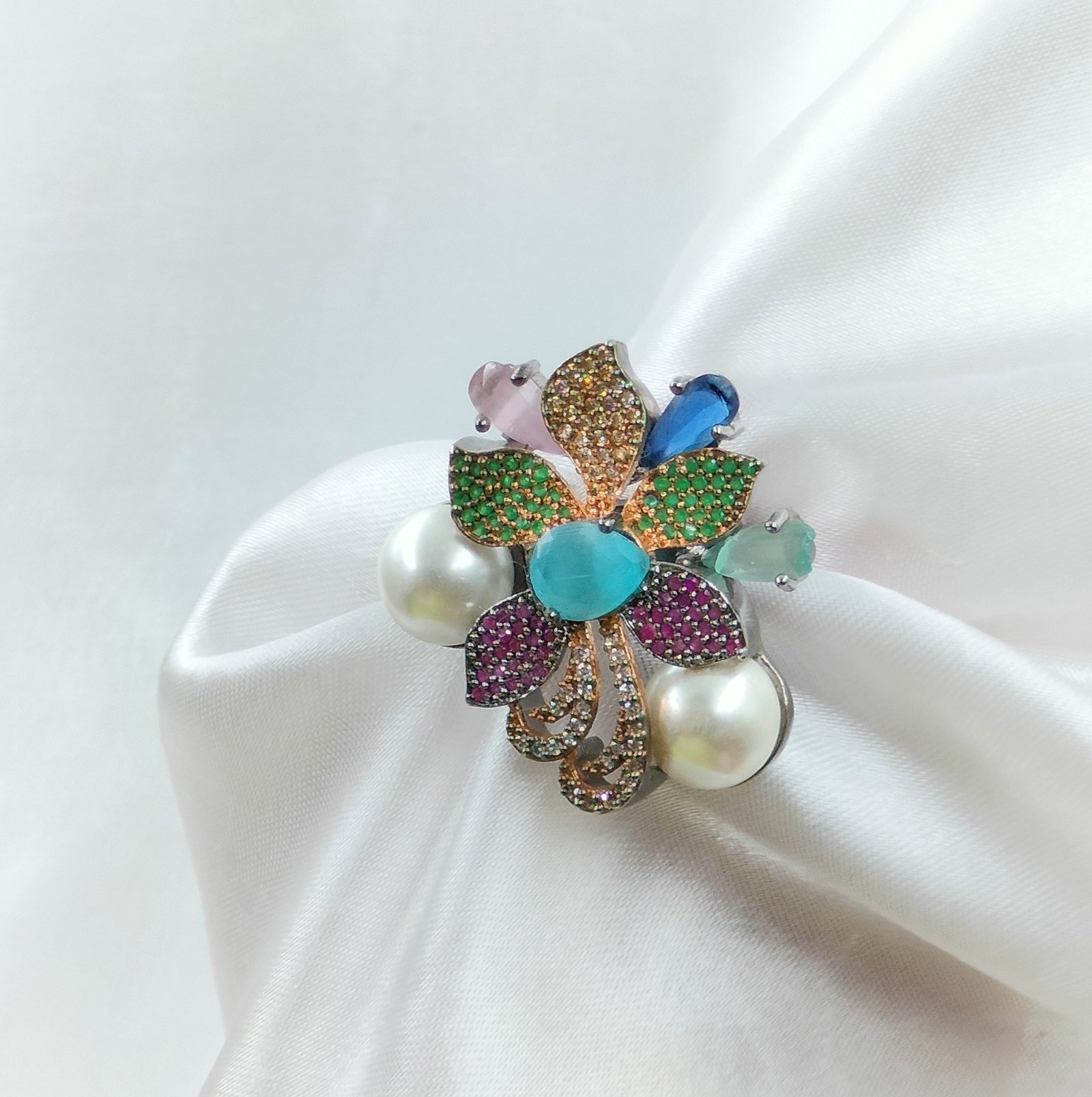 You can wear the Multi Stone Cocktail Ring with sarees, gowns, western dresses, and Indo-western ensembles. Whether you attend weddings, festive gatherings, formal dinners, or celebrations, this ring naturally enhances your look. Additionally, it works beautifully as a gifting option for birthdays, anniversaries, or special surprises, making it a thoughtful and elegant choice.