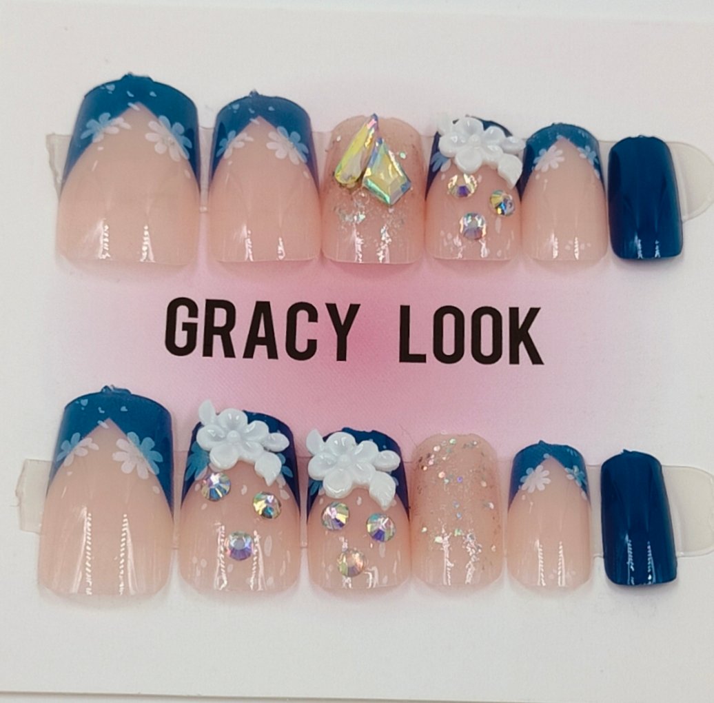 The Nude & Blue Press-Ons are perfect for fashion-forward individuals who want to make a statement without compromising elegance. Pair them with casual outfits for a playful look or with formal attire for a polished finish.