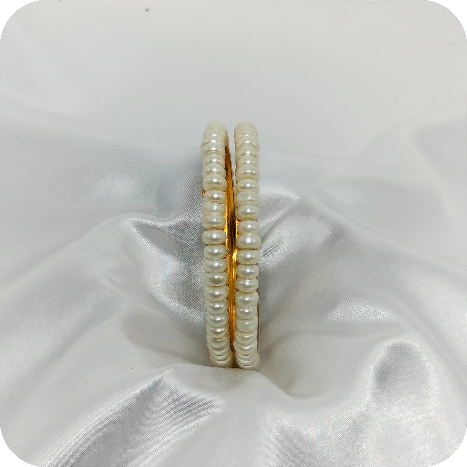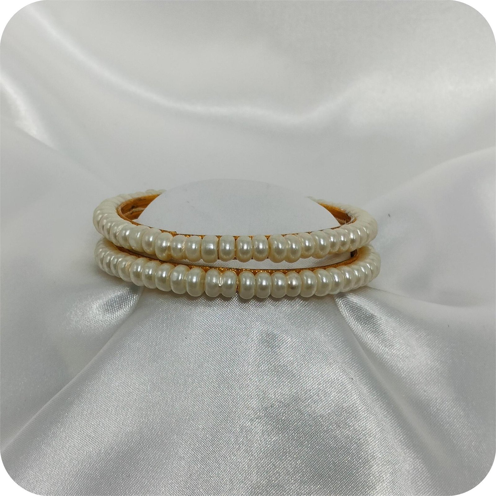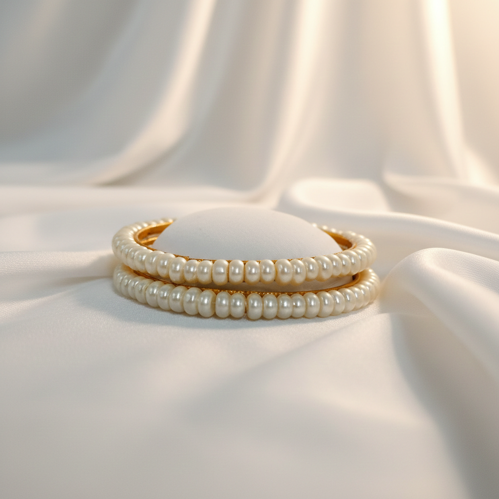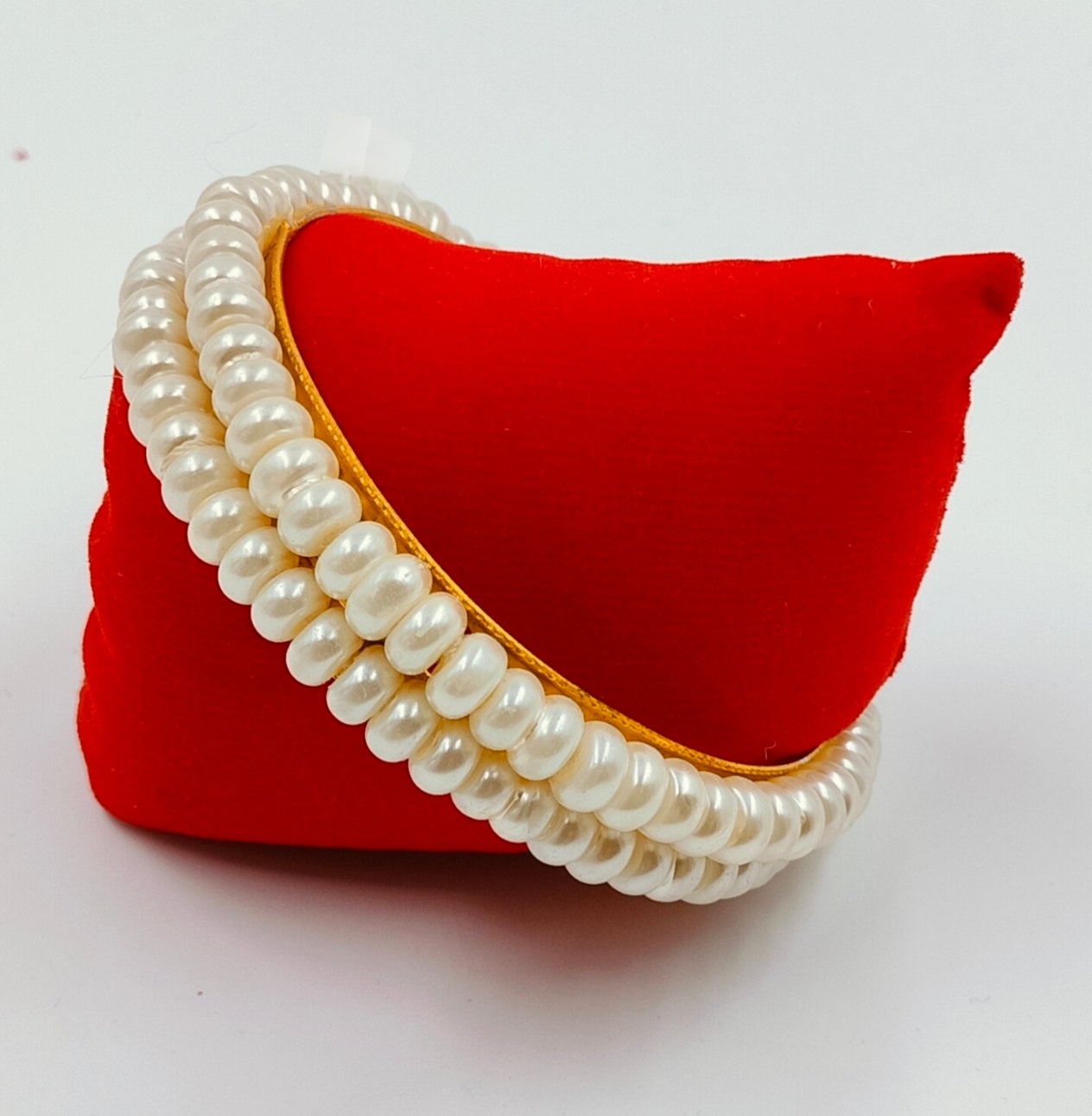 Whether you’re dressing for a family wedding, a festive celebration, or even a religious ceremony, these bangles elevate your ethnic wear instantly. Their graceful finish pairs wonderfully with sarees, lehengas, or salwar suits. The lustrous pearls give your wrists a soft glow, making them the highlight of your outfit.