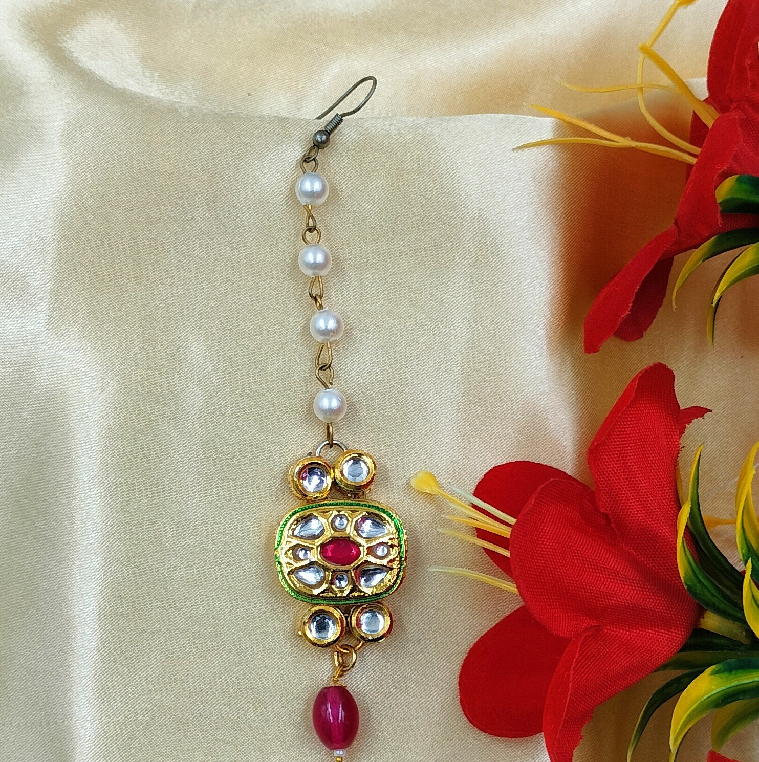 🌐 Shop the Pearl & Kundan Droplet Maang Tikka today and discover more bridal and ethnic jewelry crafted to celebrate you.