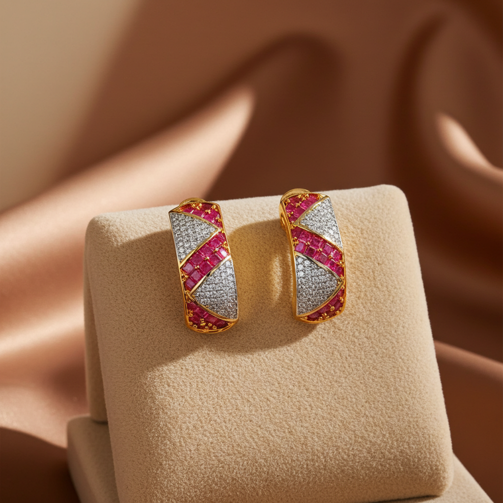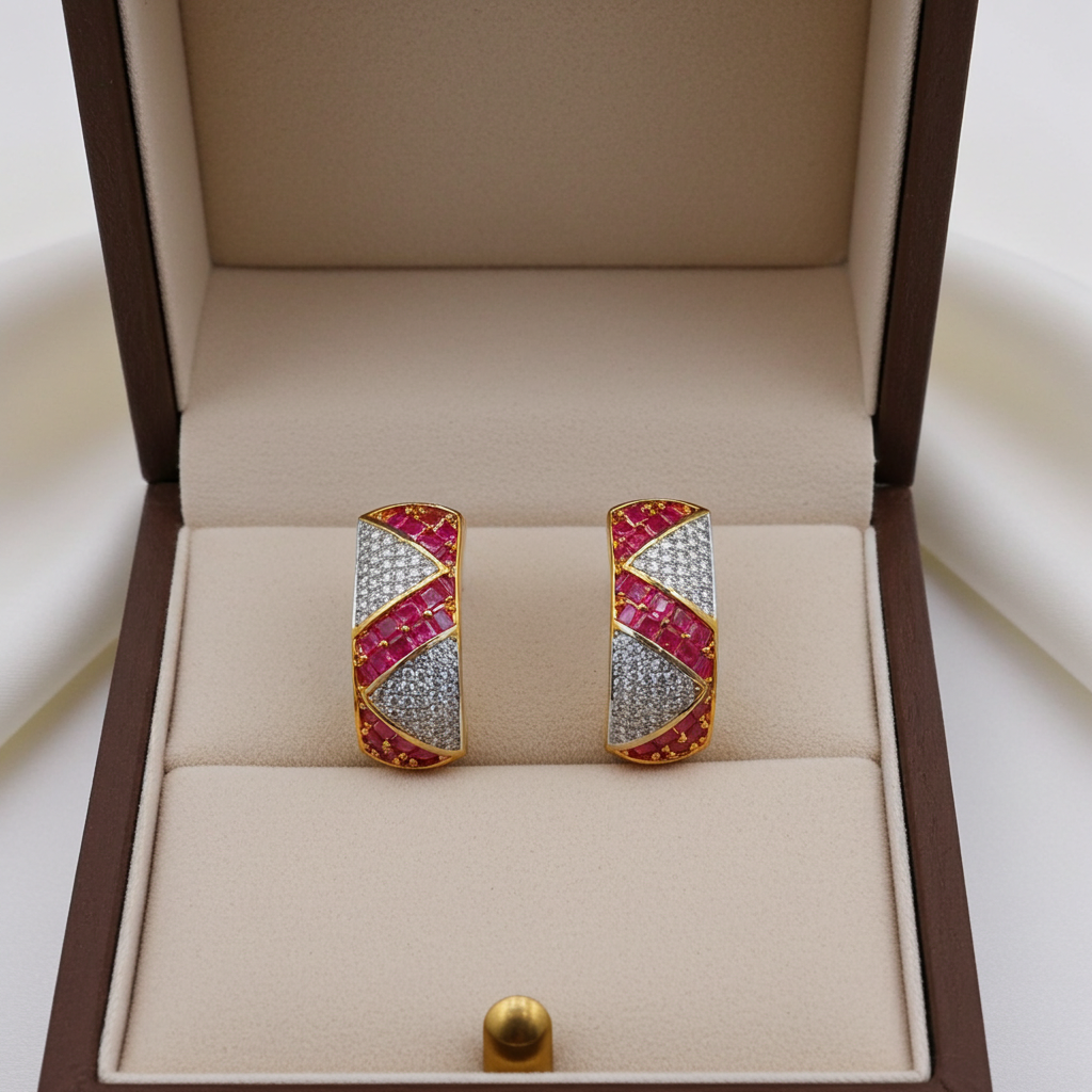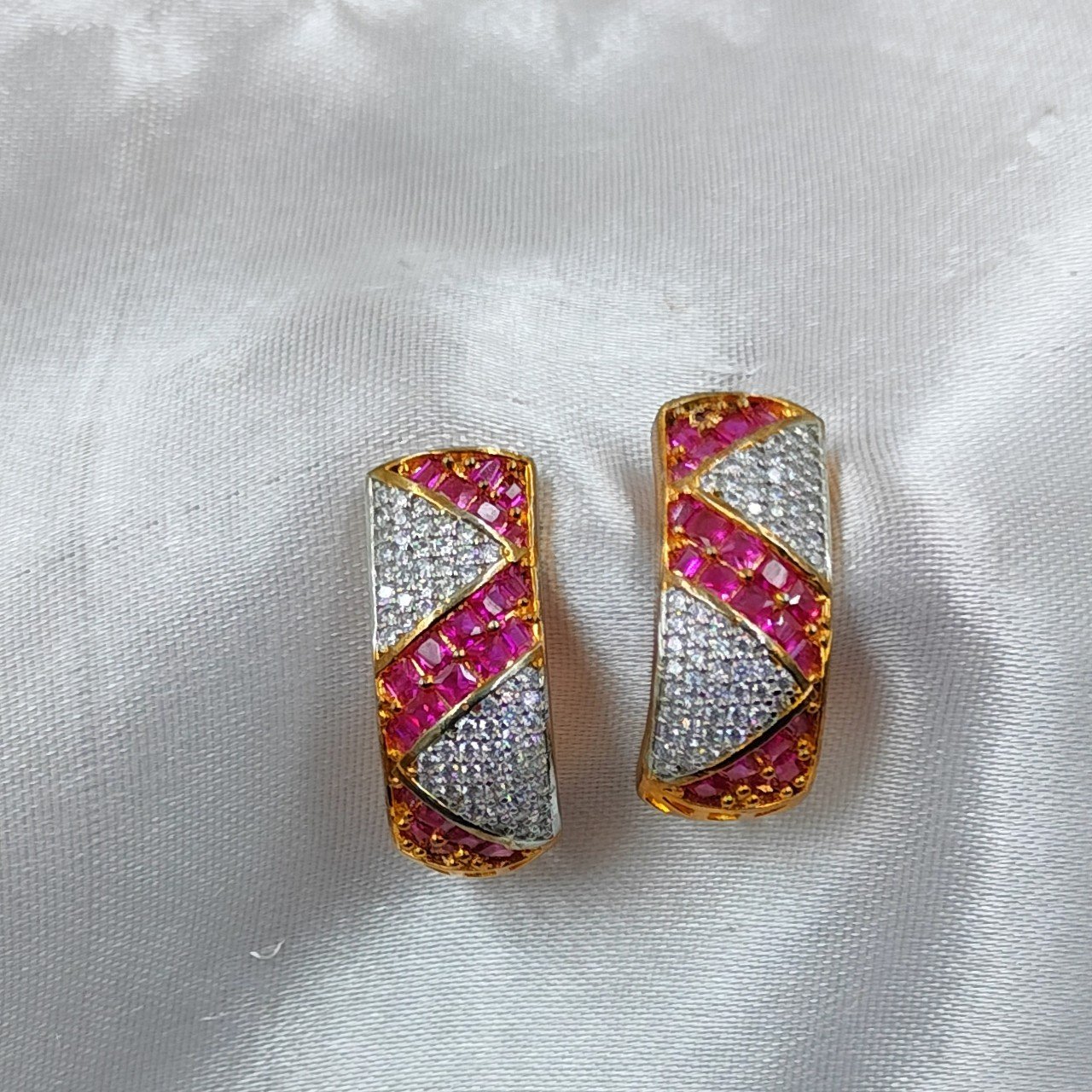Whether for a wedding, festive puja, or an evening cocktail party, these festive hoop earrings bring just the right dose of opulence. The vivid pink stones radiate energy, while the CZ stones add a refined sparkle—making them a must-have in your traditional Indian jewelry collection.