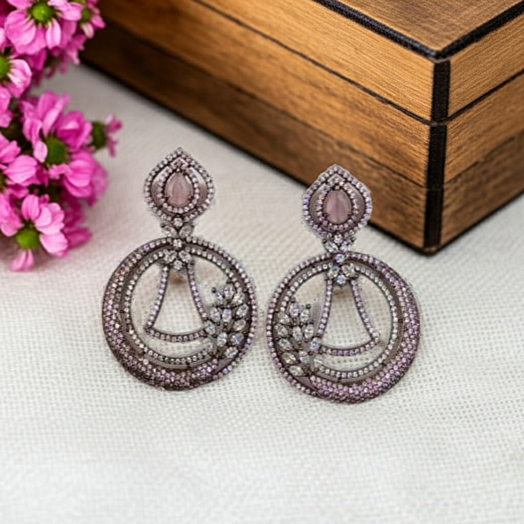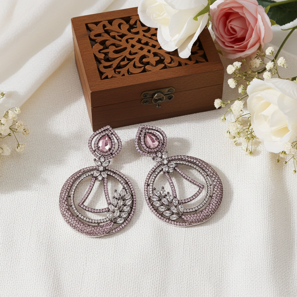 The push-back closure ensures a secure fit and all-day comfort. Whether paired with a traditional kurti, a flowing saree, or a modern jumpsuit, these Pink CZ Crystal Earrings fit in effortlessly. They’re the perfect balance between minimal design and eye-catching sparkle—crafted to suit your unique sense of style.