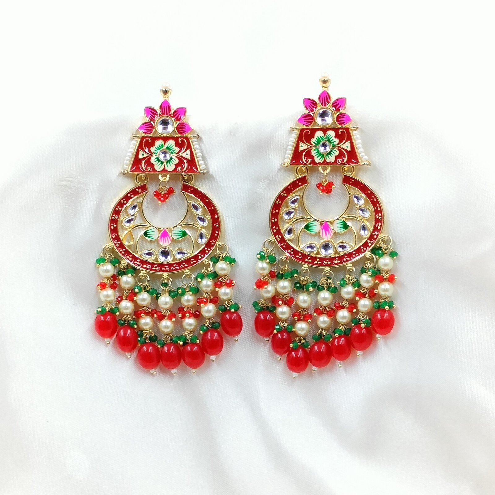 Festive Flair in Every Detail – Red Meenakari Chandbali Earrings