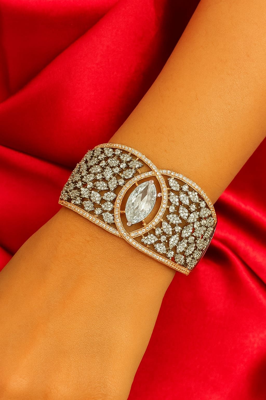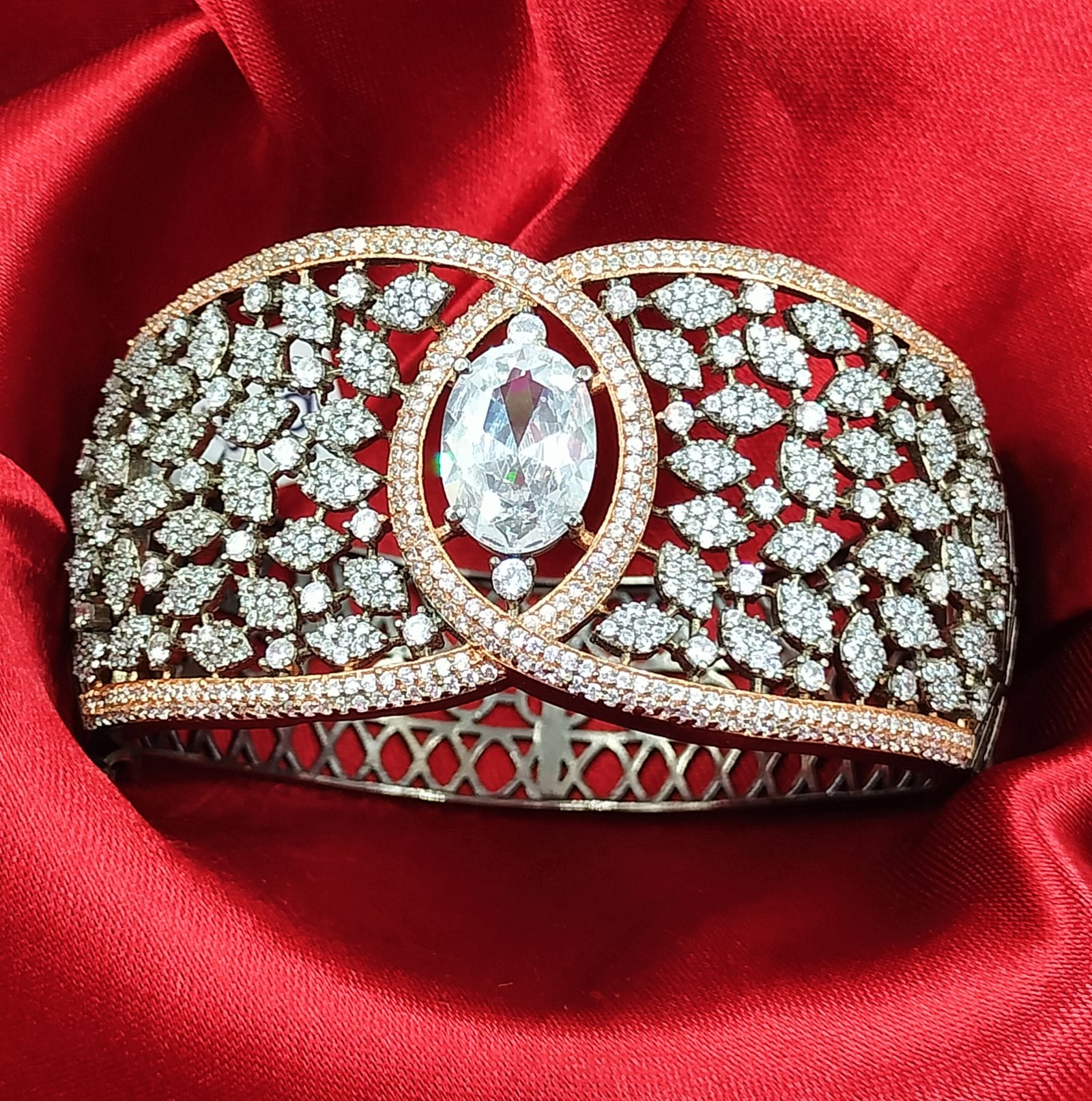 Crafted from high-quality brass, the bracelet boasts a durable rose gold plating that resists tarnishing. The oval diamond-inspired CZ stone captures light beautifully, creating a dazzling yet sophisticated shine. Whether you’re dressing up for a wedding, a festive event, or an intimate dinner, this piece adds charm without overpowering your outfit.