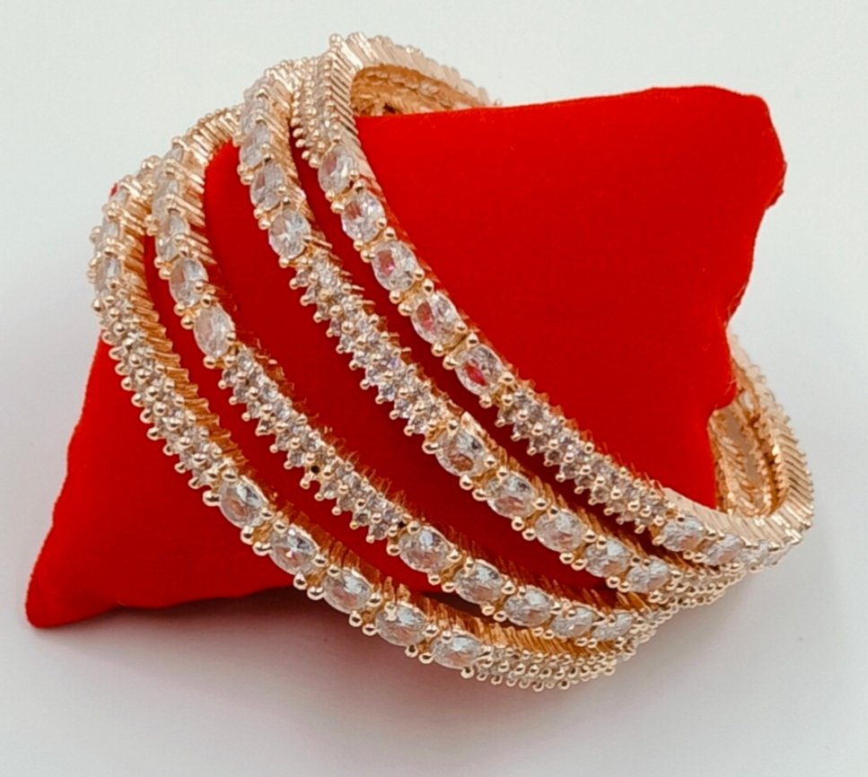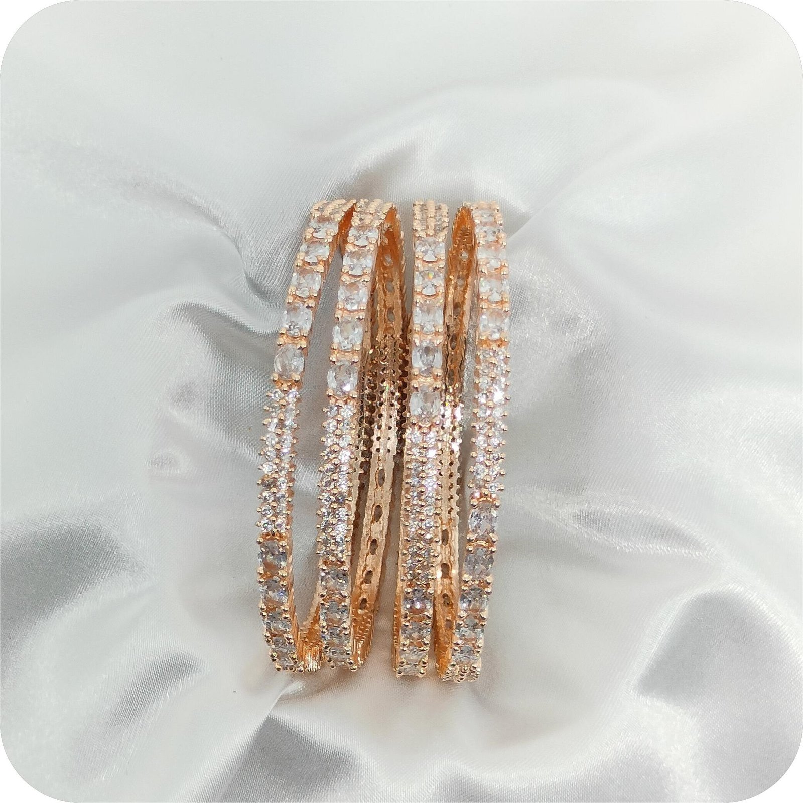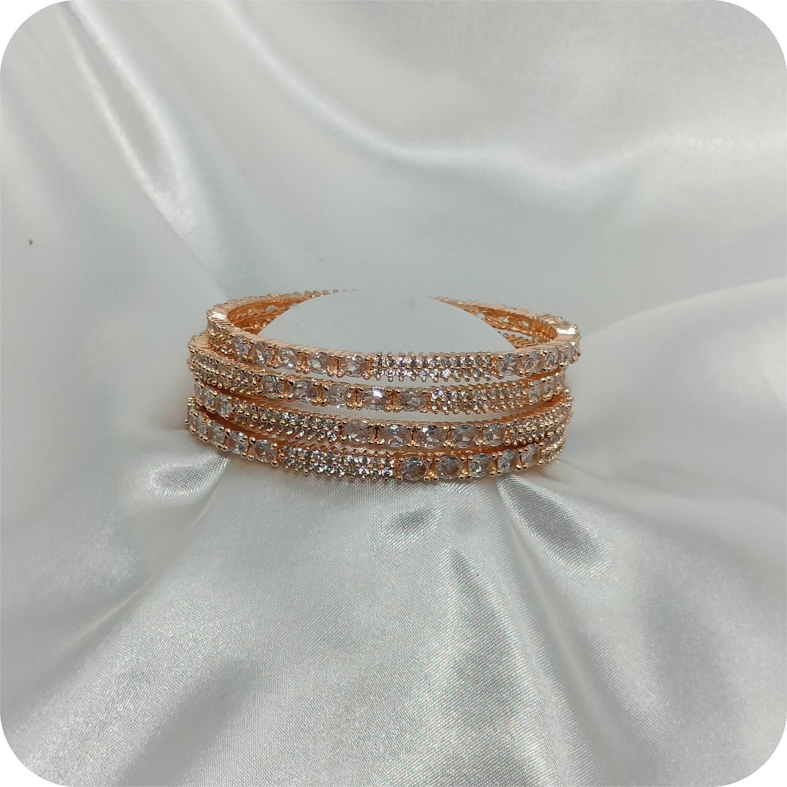 Whether you’re preparing for a wedding, pooja, family function, or festive gathering, these Rosegold CZ Bangles adapt effortlessly to both traditional and contemporary styles. Wear them with a silk saree, a floor-length gown, or even a designer kurti—they’ll never feel out of place.