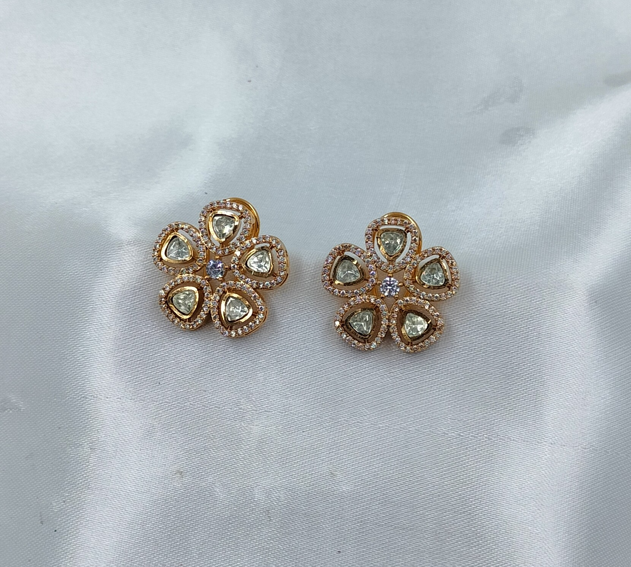 Rosegold Kundan Floral Studs — www.radiantjewels.store