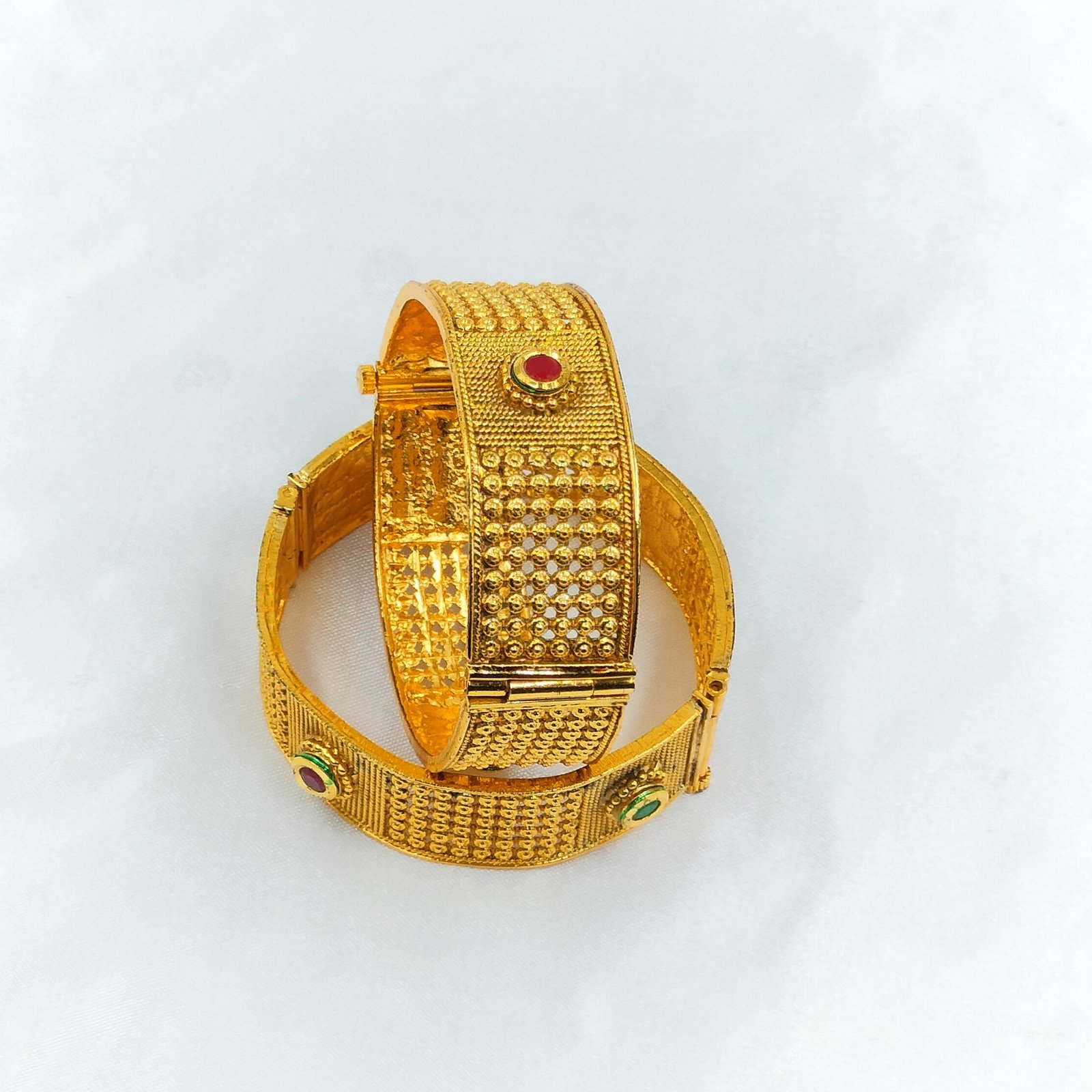 The set is designed in size 2.6, offering a comfortable fit for most wrists. Whether you are dressing for a wedding, festive celebration, or a cultural event, these bangles will enhance your ethnic attire. Pair them with sarees, lehengas, or even Indo-western outfits to create a regal look.