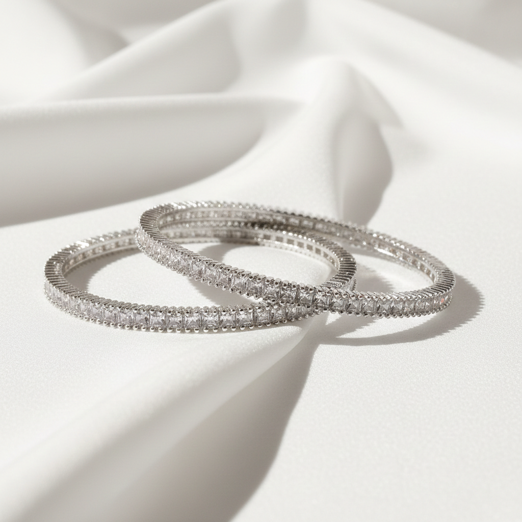 Silver Crystal AD Bangles – Elegant Bridal & Party Jewels | Radiant Jewels Store
