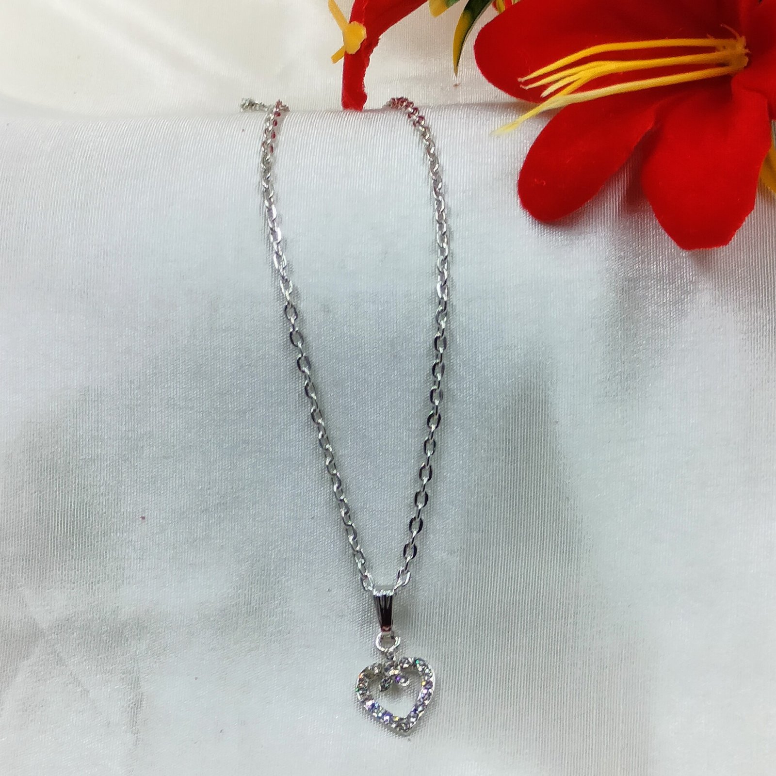 Crafted in a luminous silver tone, the heart-shaped charm rests on a sleek, fine chain that drapes gracefully with every movement. The polished finish reflects light beautifully, adding a subtle sparkle that complements both casual and formal looks. It’s an ideal choice for layering or wearing solo as a signature accessory.