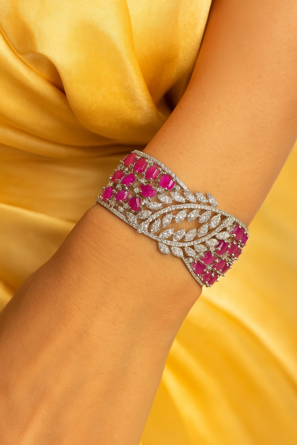 Lightweight and comfortable, this bracelet has been thoughtfully crafted to ensure it can be worn all day without any hassle. The adjustable design makes it suitable for most wrist sizes, adding both practicality and versatility. It seamlessly blends with different looks, whether paired with traditional Indian outfits or chic western wear. The soft pink stones especially complement pastel shades, floral prints, and embroidered attire, making it a versatile choice for styling across seasons.