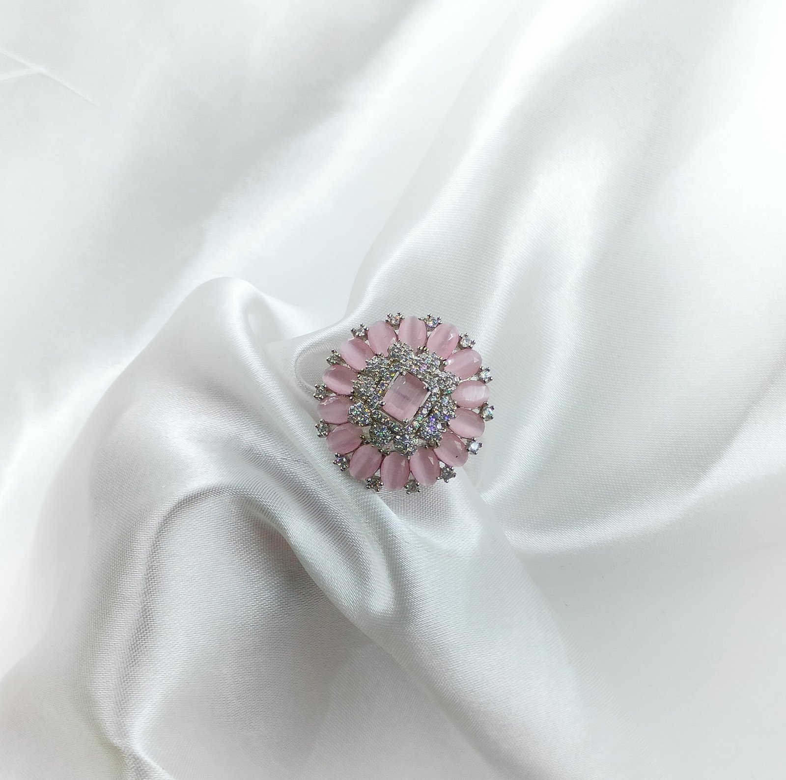 Whether you’re attending a wedding, a party, or a festive gathering, this cocktail ring ensures you make a lasting impression. The CZ stones are precision-cut and arranged to form a radiant bloom, catching light from every angle. The design exudes both charm and sophistication, making it perfect for women who love to stand out gracefully.