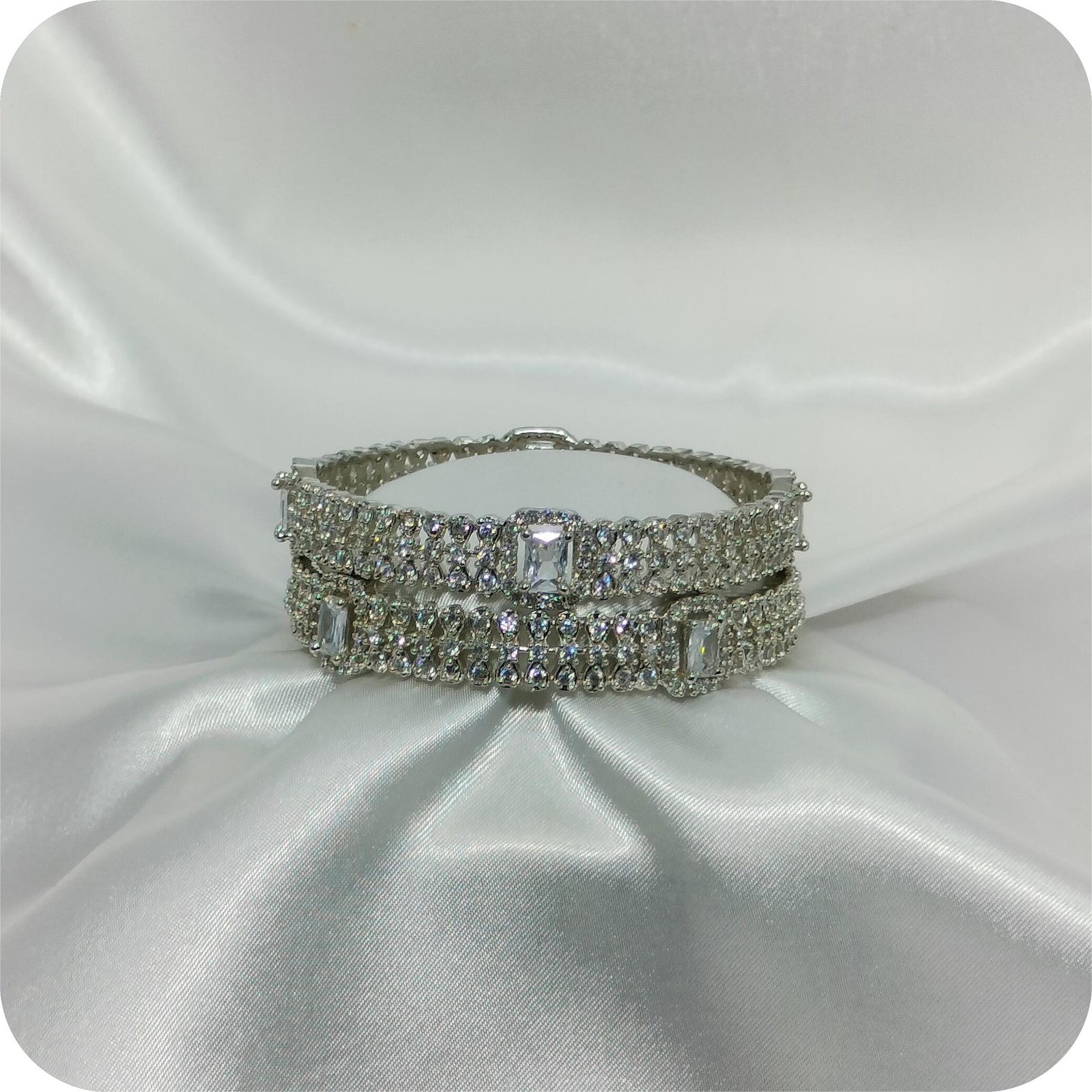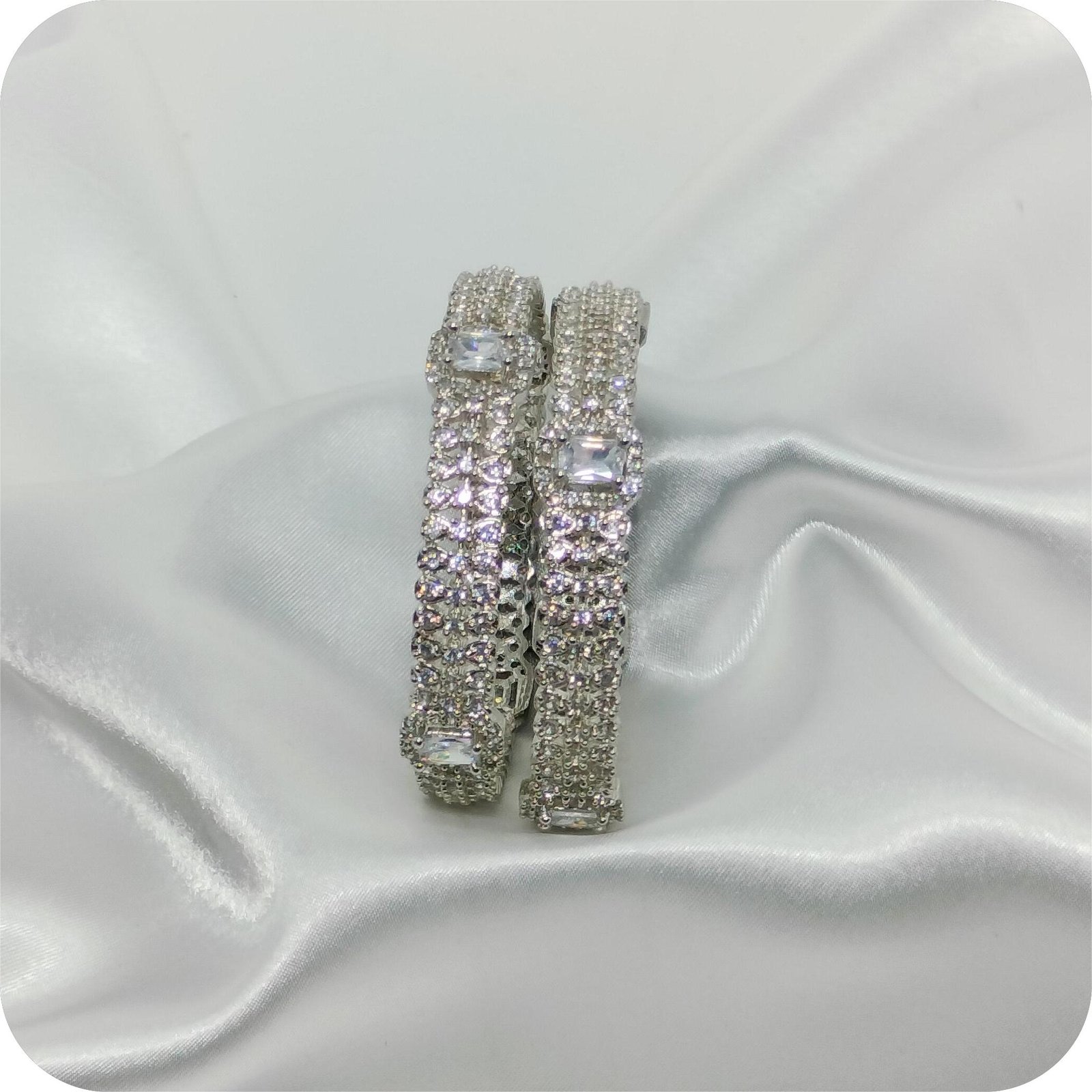 Elevate your look with the brilliance and charm of Sparkling Crystal Bangles – a celebration of femininity and finesse.
