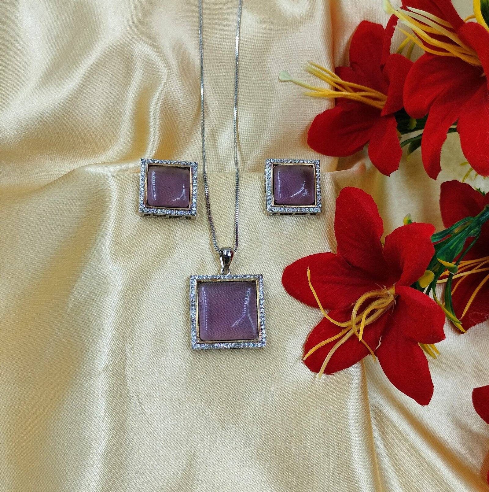 Celebrate elegance and grace with our Square Crystal Pendant Set – a perfect piece for festive moments and cherished occasions.