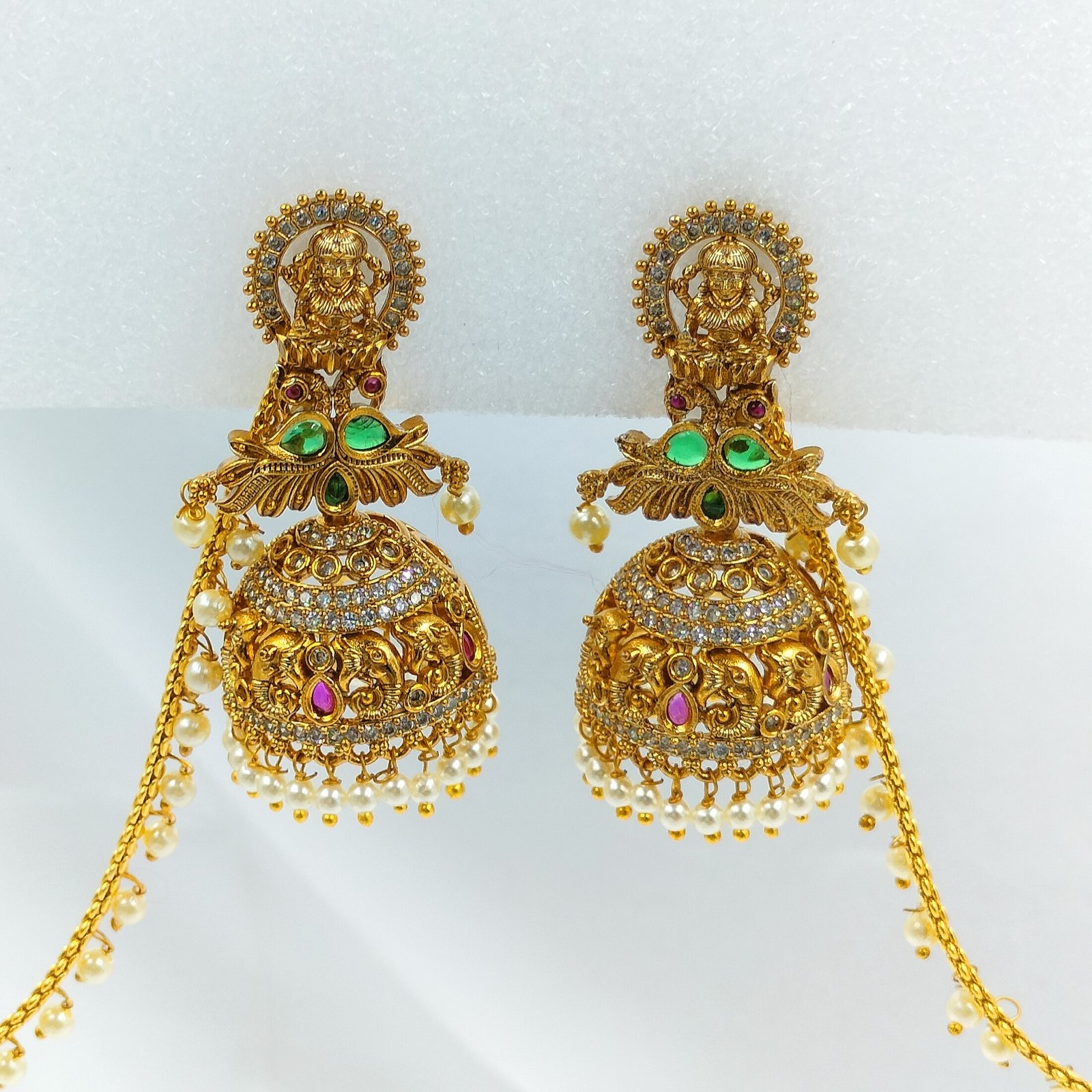 Temple Jewelry Jhumka with Ear Chain – Traditional South Indian Elegance for Every Festive Look