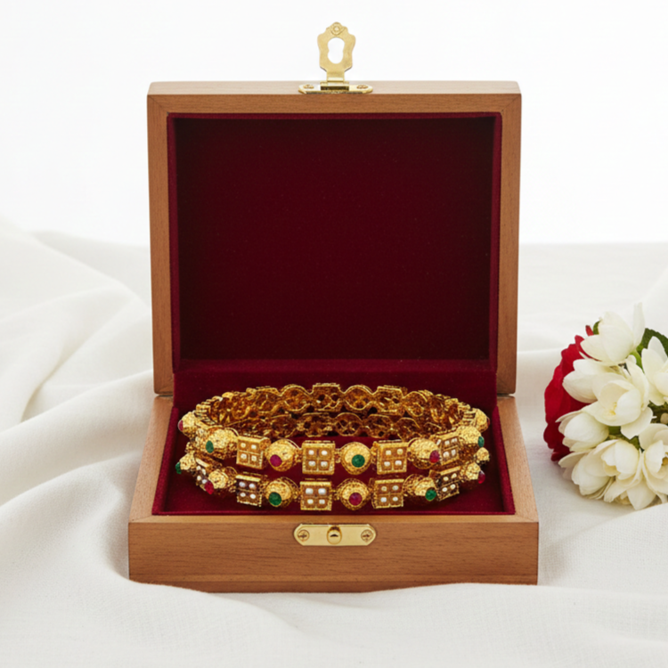 Add these Traditional Gold Plated Bangles to your jewellery box today. Celebrate timeless beauty and carry tradition with modern charm. Order now and shine on every occasion.