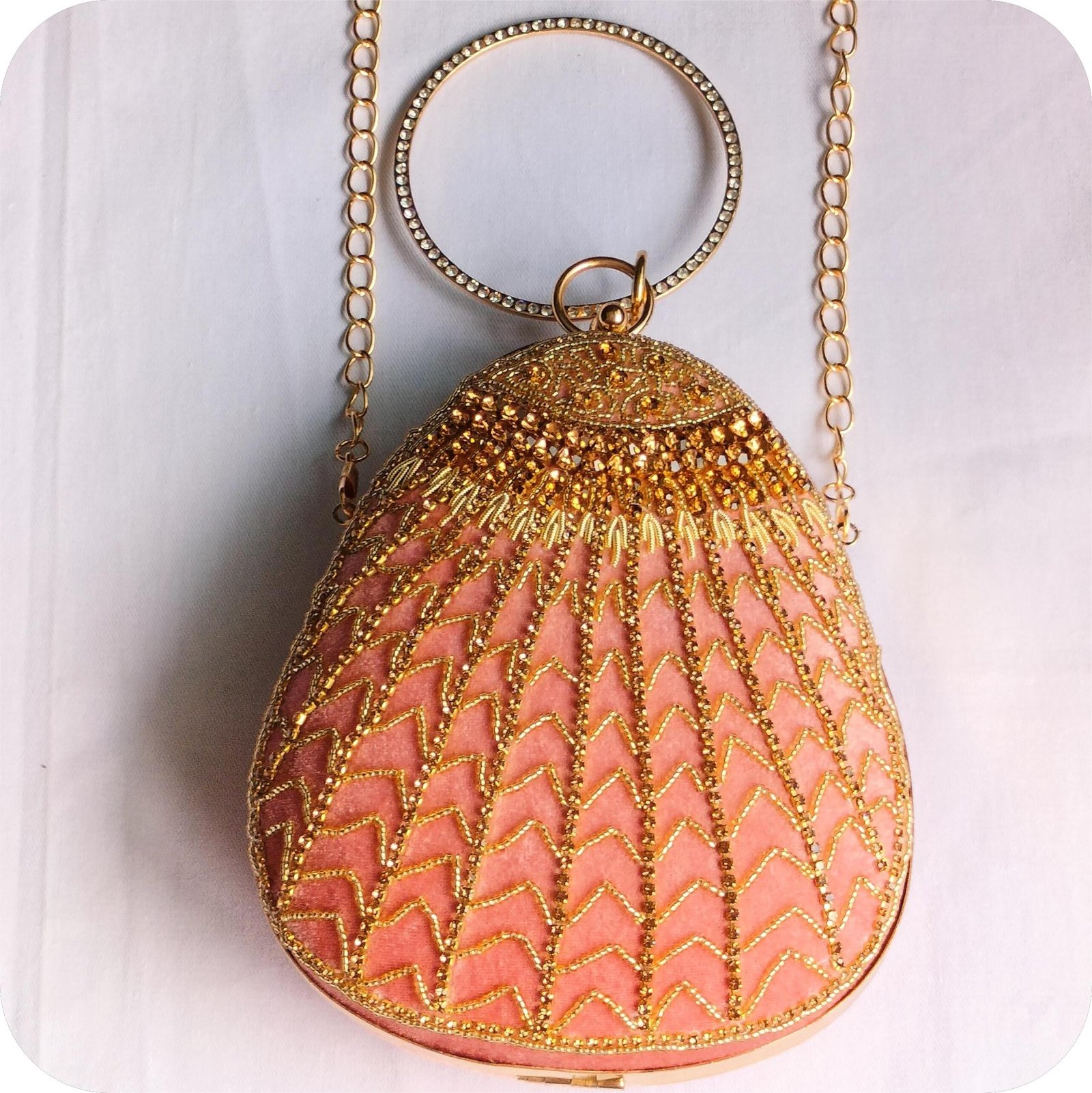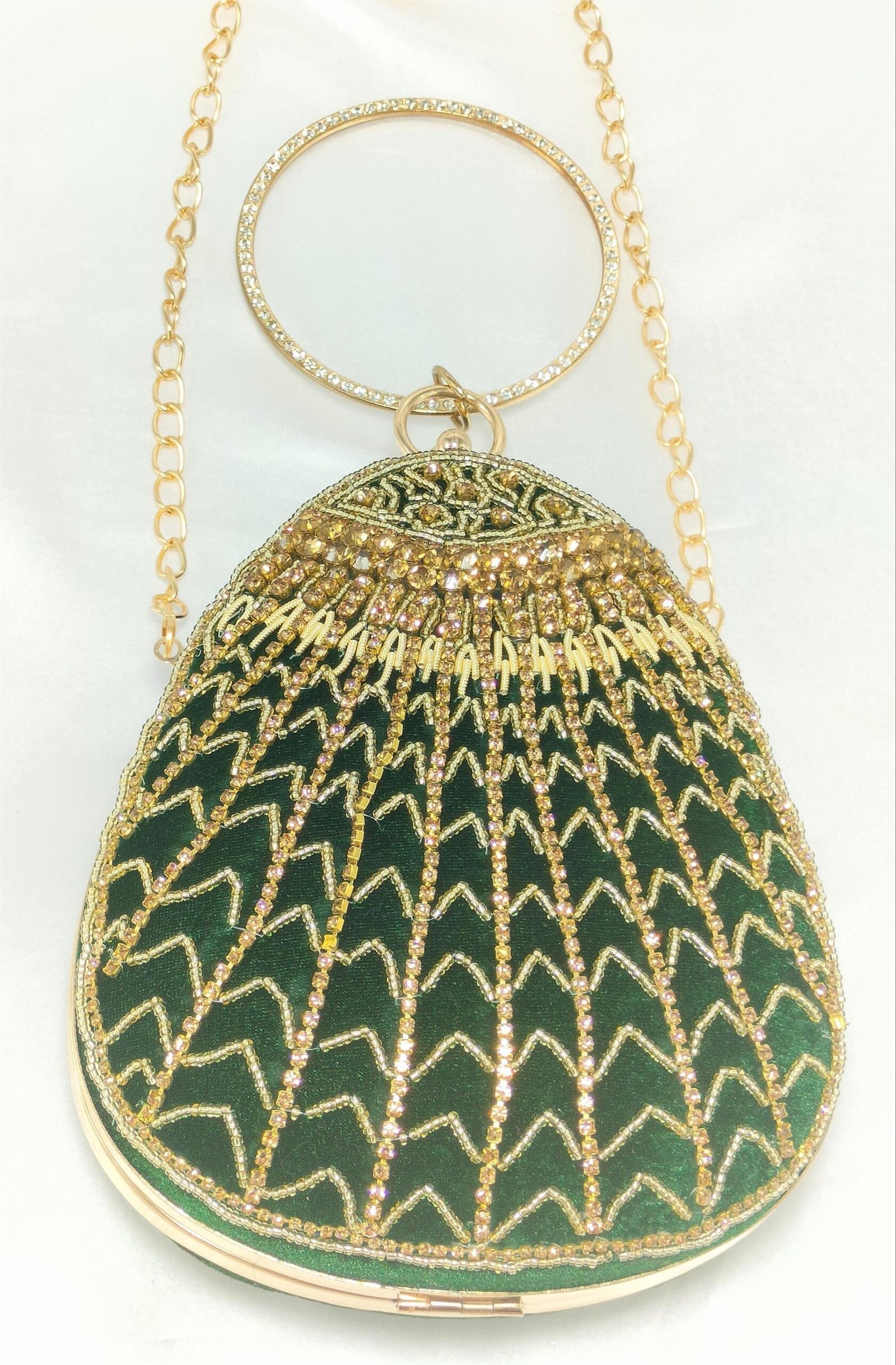 Velvet Gold Beaded Ring-Handle Clutch – Radiance in Every Detail