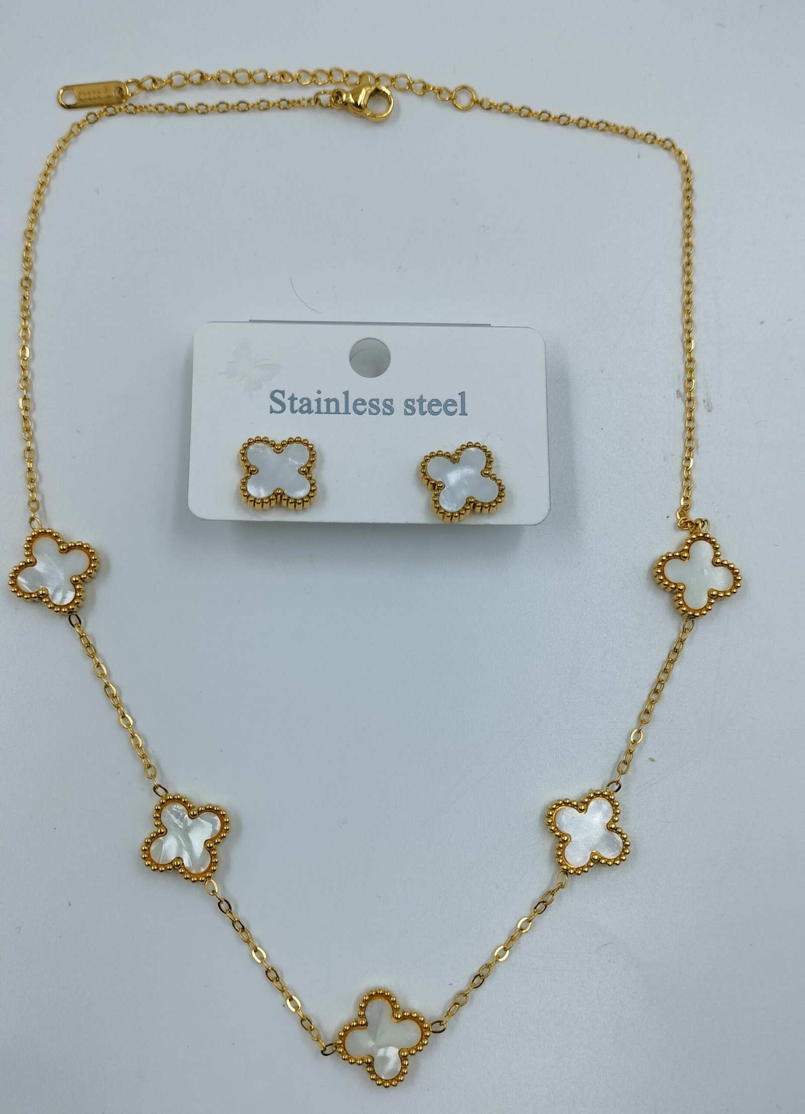 The pristine white enamel clover rests elegantly on a fine gold-plated chain, creating a look that’s both minimal and meaningful. Matching earrings echo the same elegance, adding subtle sparkle to your overall appearance. Thanks to its lightweight construction, this set feels comfortable all day long, whether you’re attending a celebration or just stepping out for a lunch date.