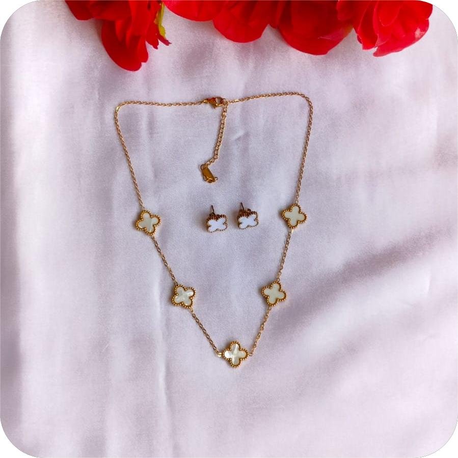 Add a sprinkle of luck and luxury to your festive wardrobe with the White Four-Leaf Clover Pendant Set, available exclusively at www.radiantjewels.store. Inspired by the charm of four-leaf clovers, this graceful pendant set makes the perfect accessory for both casual days and festive nights.