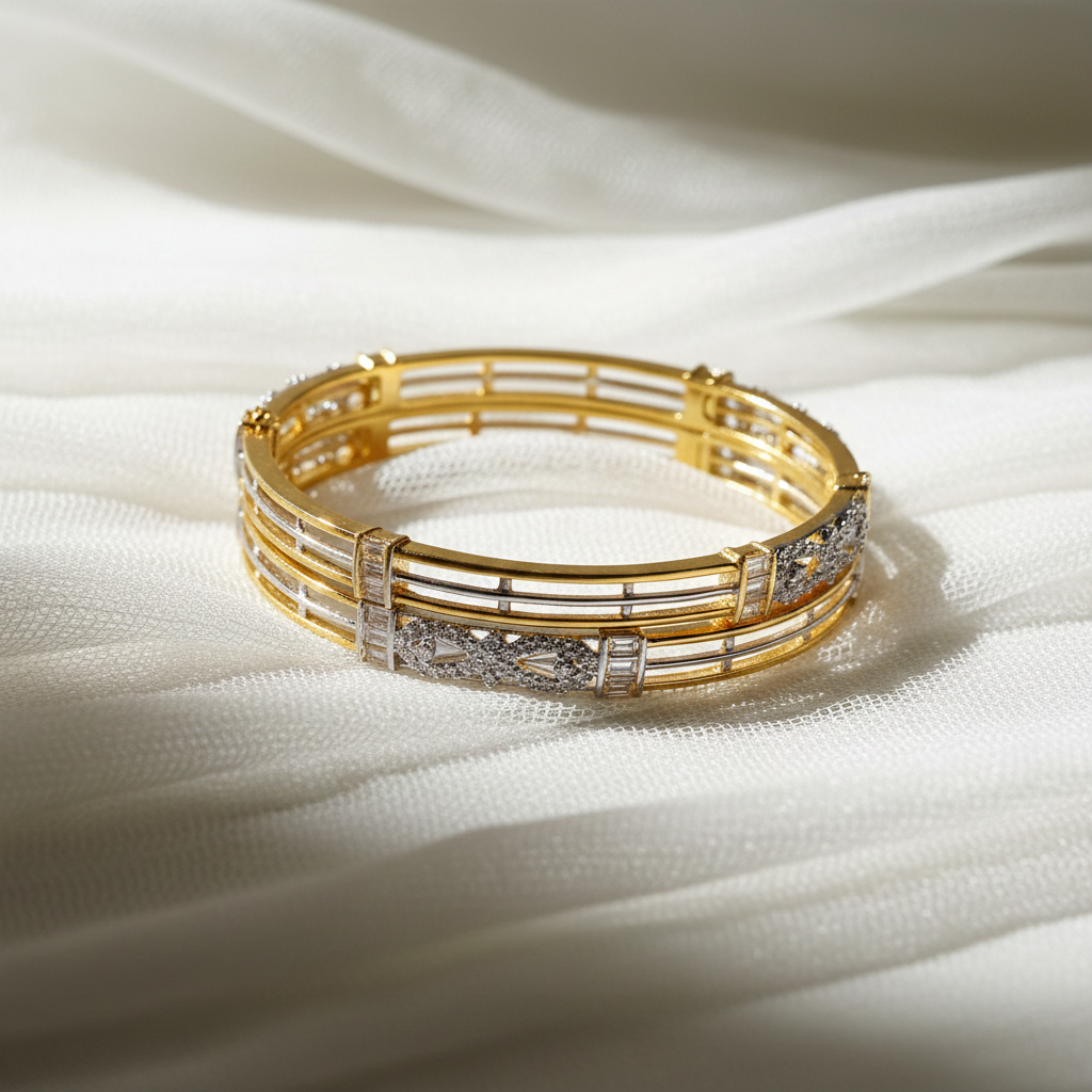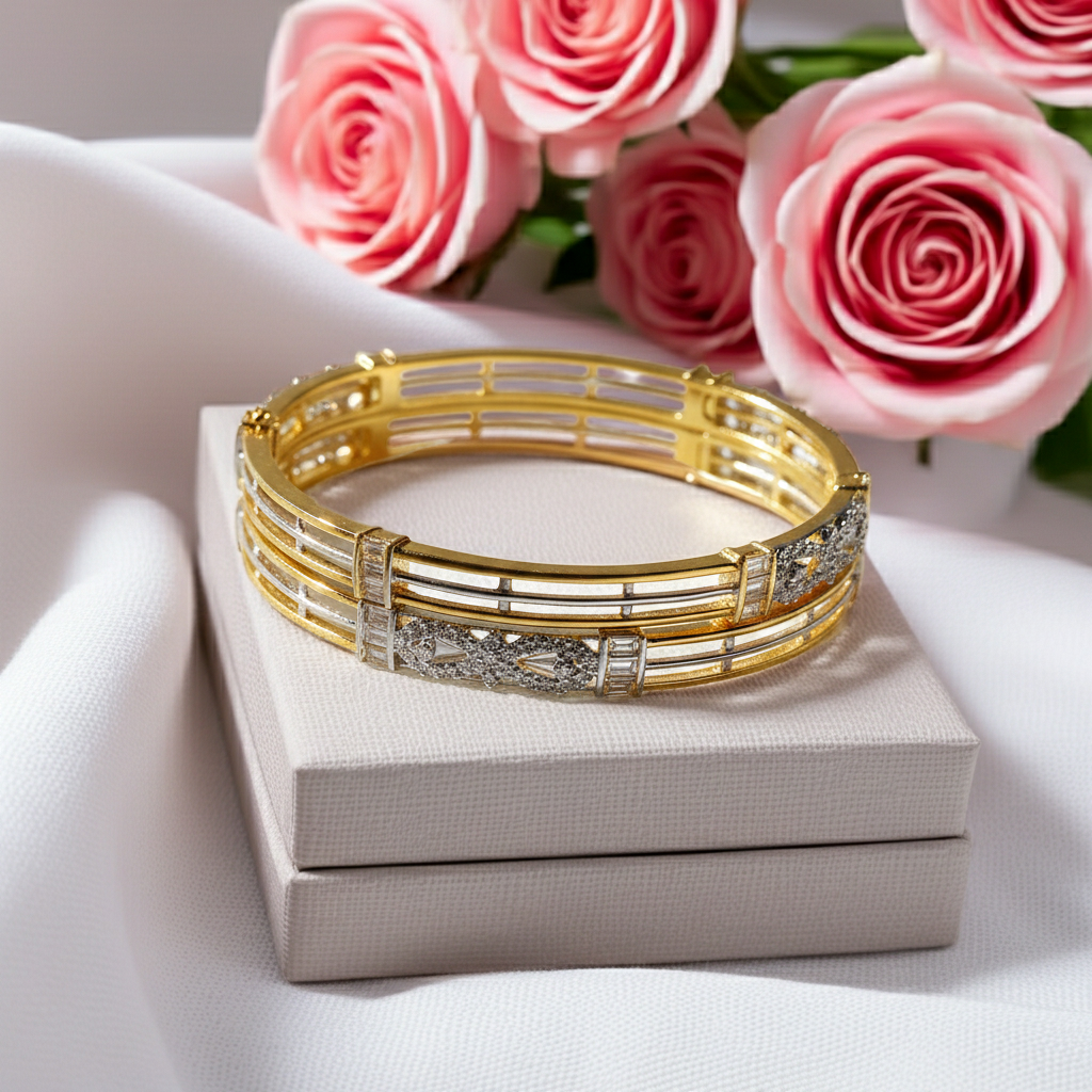 Zircon Dual-Tone Bangle – Golden & Silver ShineÂ